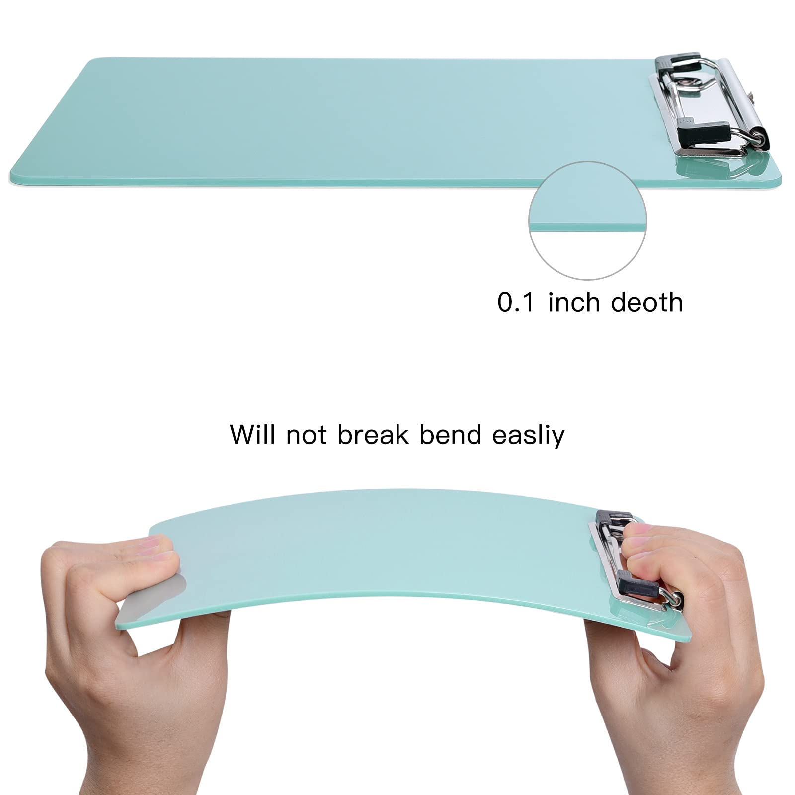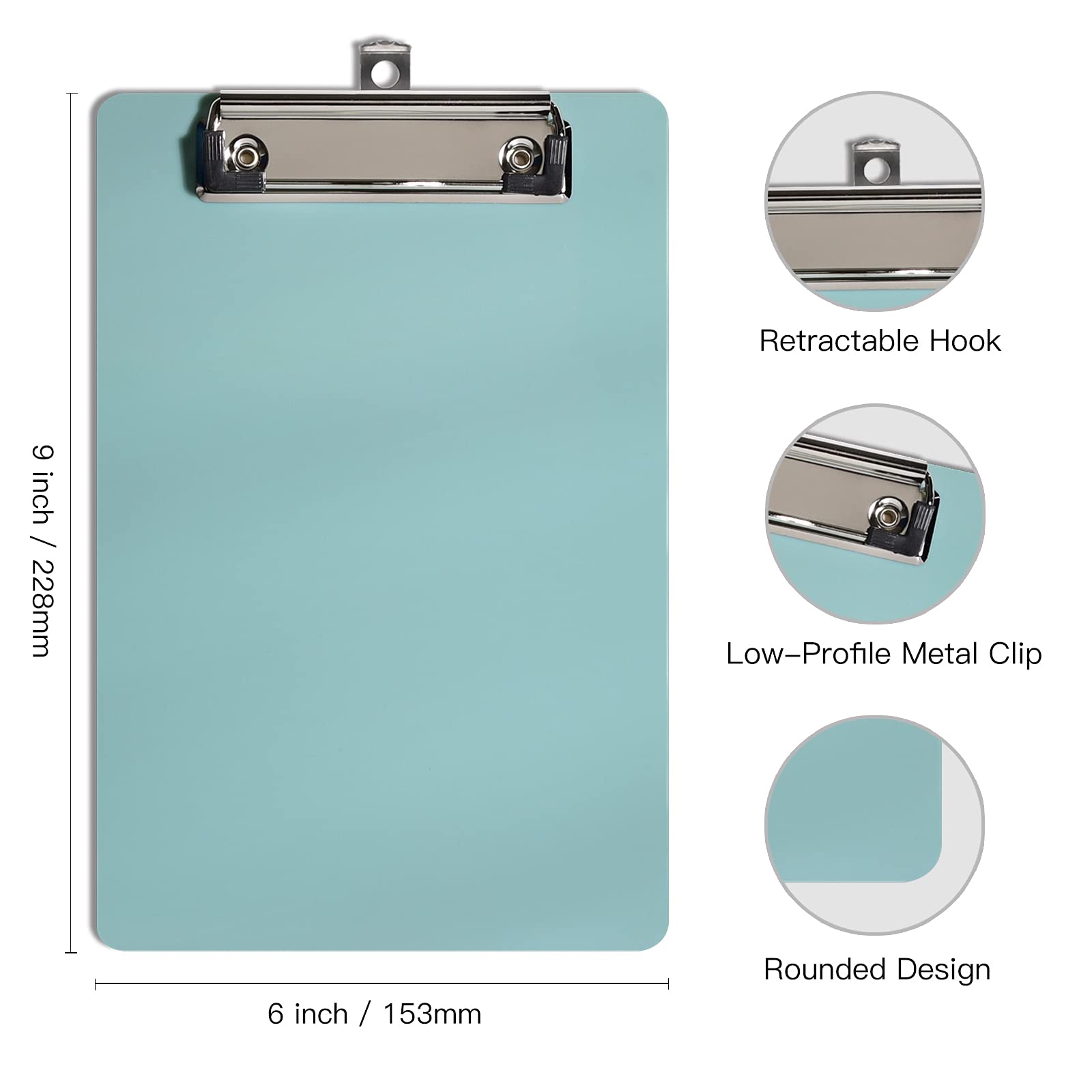 الأبعاد: يبلغ مقاس كل لوح مشبك 150 × 228 × 25 مم (6 × 9 × 0.12 بوصة)، وهو لوح مشبك ذو تصميم بسيط. سمكه البالغ 0.1 بوصة يوفر متانة كافية. متين وقابل للحمل، مثالي للمكتب والمنزل والعمل والمدرسة.