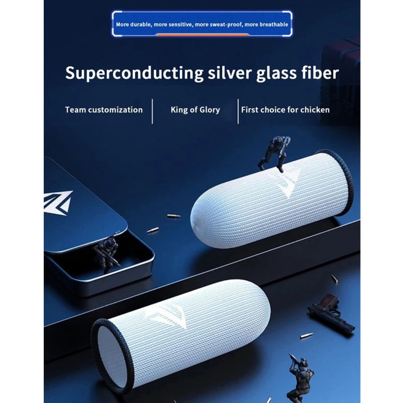 غطاء أصابع للعبة من ألياف زجاجية فضية منسوجة بكثافة مكون من 24 سنًا، خياطة سلسة عالية الدقة، تشغيل حساس، استجابة مستمرة لشاشة اللمس، أكثر راحة في الارتداء من الأيدي العارية.