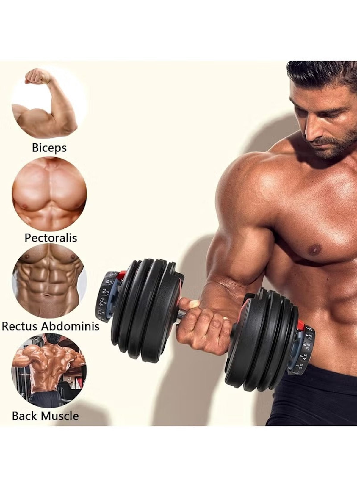 يمكنك أداء العديد من التمارين. ركّز على عضلات الذراع والصدر والظهر والكتفين. بدّل الأوزان بسرعة وحافظ على سلاسة تمرينك. تصميم هذا الدمبل القابل للتعديل بوزن 40 كجم في الإمارات العربية المتحدة يضمن لك تنظيمًا مثاليًا لغرفتك. احصل على تمرين كامل للجسم في حل واحد صغير الحجم.