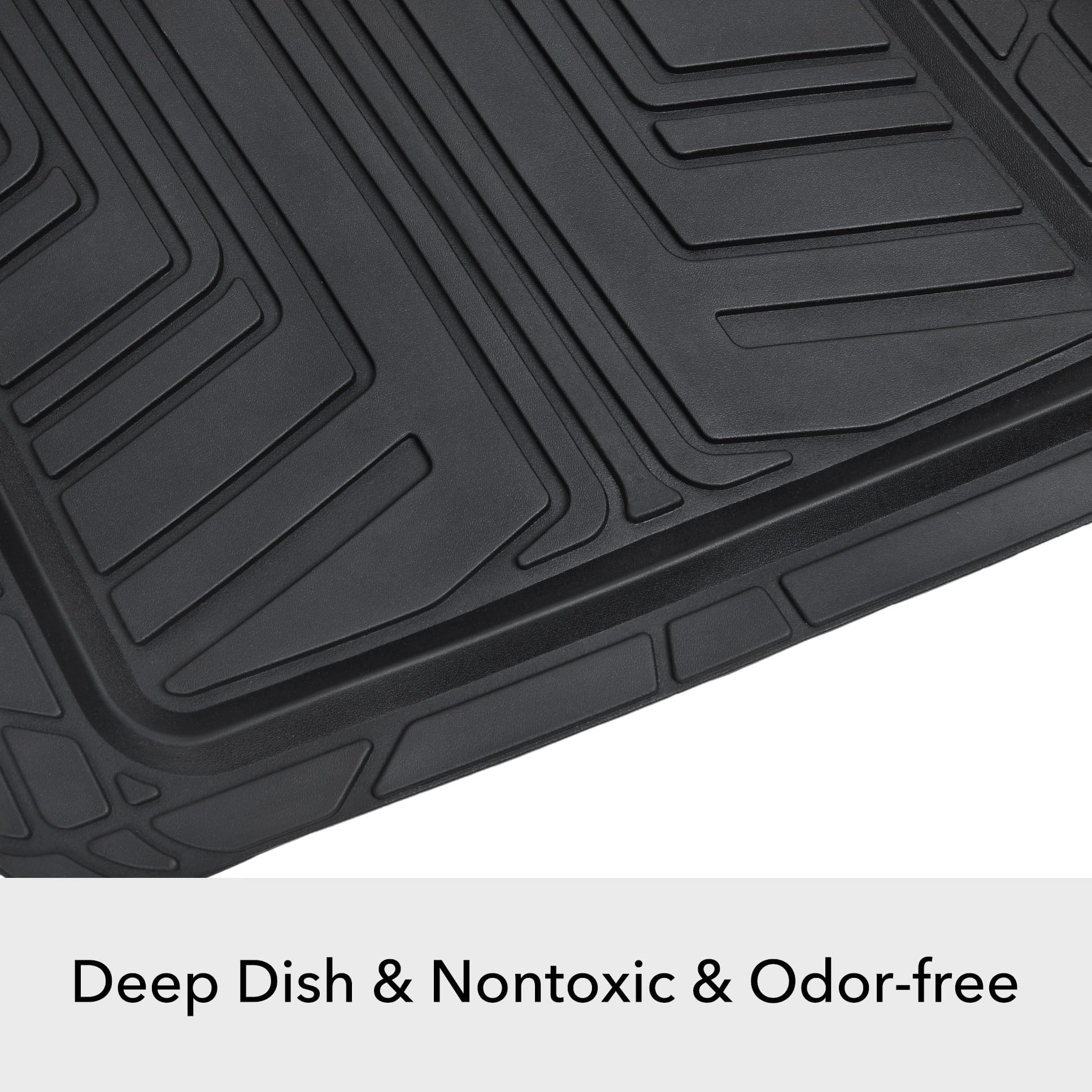 بساط أرضيات مطاطي عديم الرائحة، مكون من 4 قطع، مناسب لجميع المواسم، للسيارات وسيارات الدفع الرباعي والشاحنات، لون أسود