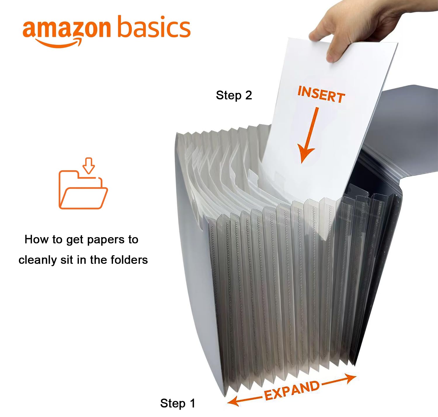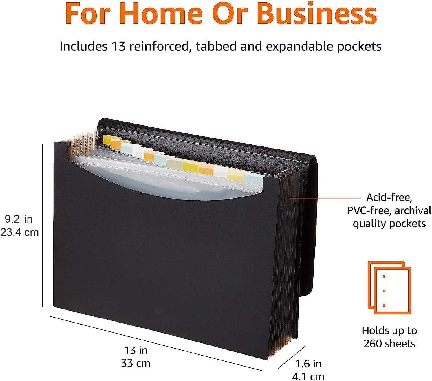 مجلد منظم للملفات قابل للتوسيع، بحجم حرف - أسود