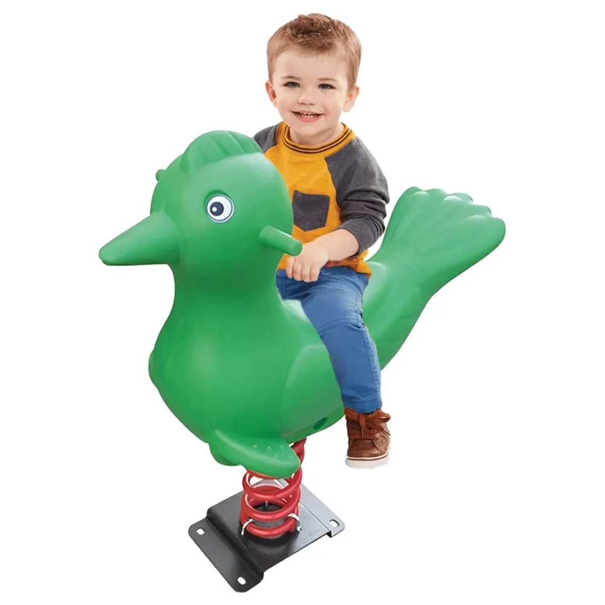 لعبة ركوب الأطفال على شكل طائر، لعبة مرحة وجذابة مصممة للأطفال الصغار. تتميز بتصميم طائر كرتوني بلون أخضر زاهي مع منقار وذيل، تُلهم خيال الأطفال وتُبقيهم نشيطين. صُنعت اللعبة من بلاستيك متين لتحمل ظروف الطقس الخارجية، وهي مُثبتة على زنبرك أحمر متين لمتعة ارتداد آمنة.