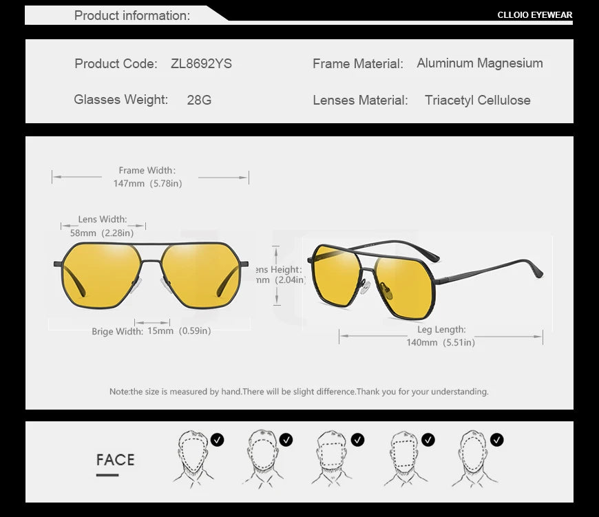 السمة البصرية للعدسات : مستقطبة، فوتوكرومية، مضادة للانعكاس، UV400