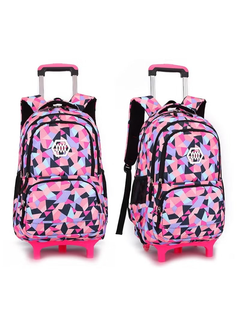 This vibrant and stylish rolling backpack is perfect for school and travel. Featuring a colorful geometric pattern and a practical design, it combines fashion with functionality. The bag includes multiple compartments, padded shoulder straps, and a retractable handle with wheels for easy and comfortable transport — making it ideal for students on the go.
