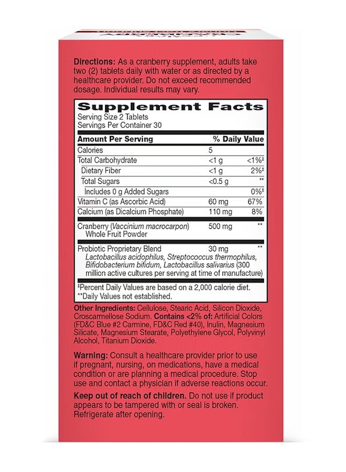 Promote urinary tract and digestive wellness with Cranberry Plus Probiotic, a powerful daily supplement designed to support overall health and balance. Each tablet combines the natural benefits of cranberry extract with probiotics to help maintain a healthy urinary tract while supporting digestive flora and immune function.