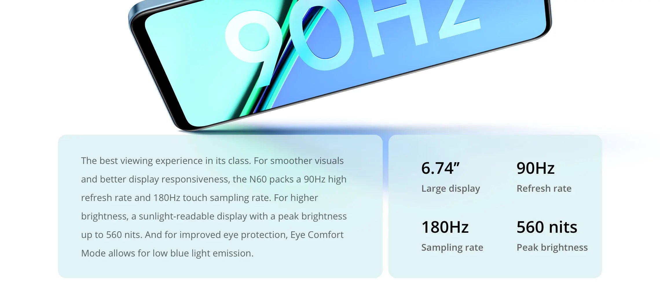 الشاشة---------- شاشة مريحة للعين مقاس 6.74 بوصة، 90 هرتز ؛ دقة عالية + 720*1600؛ سطوع 450 شمعة (TYP) / سطوع 560 شمعة (HBM)