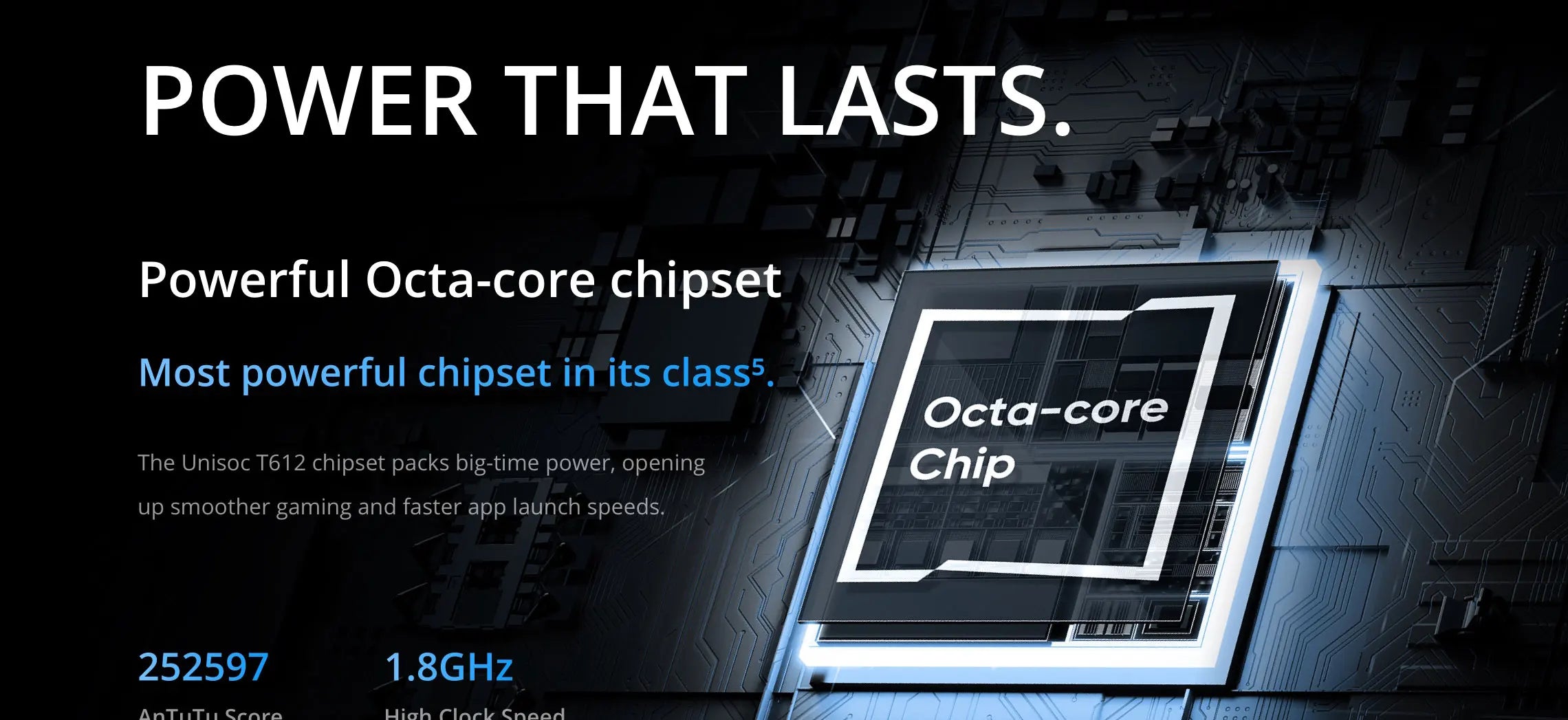 وحدة المعالجة المركزية-------------- معالج UNISOC T612 ثماني النواة ، بسرعة تصل إلى 1.8 جيجاهرتز