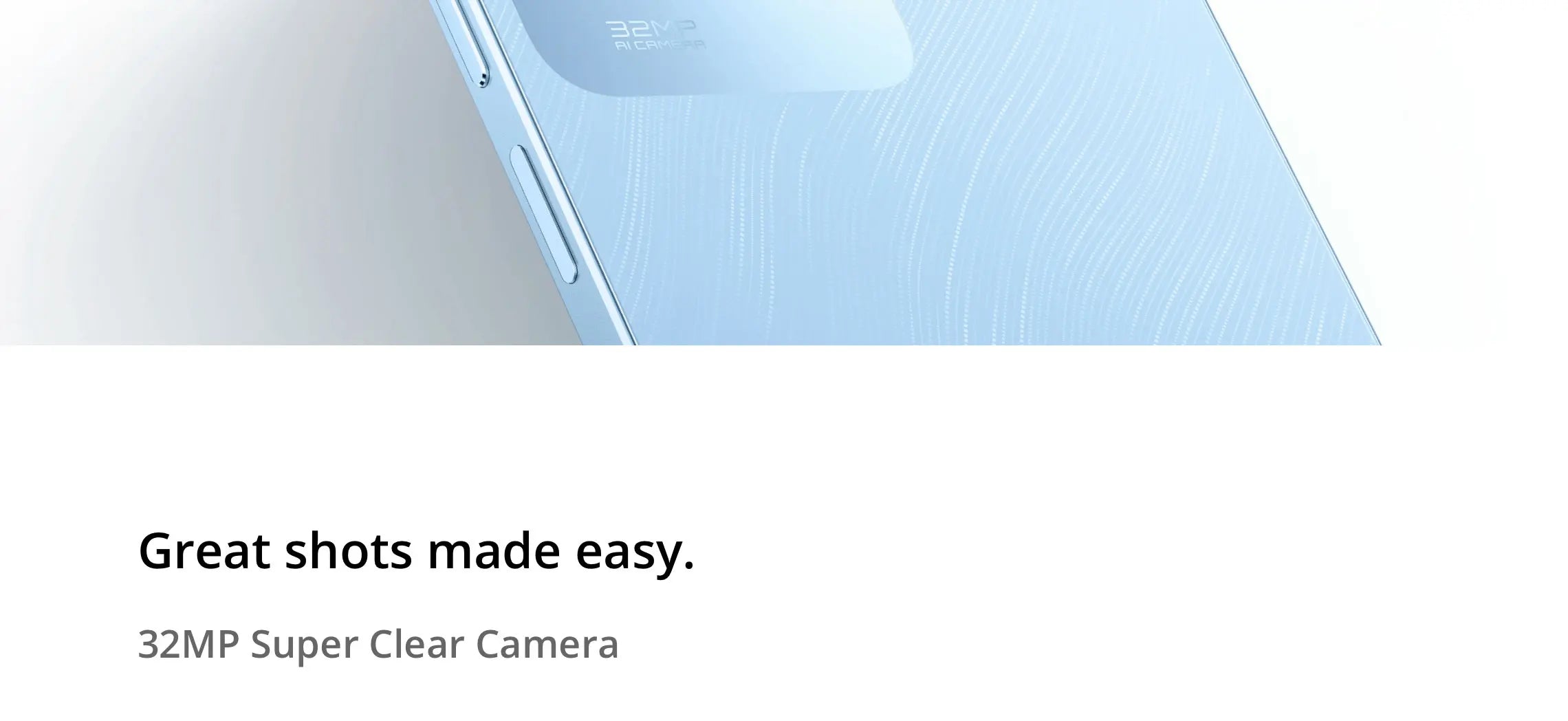 الكاميرا--------- كاميرا خلفية فائقة الوضوح بدقة 32 ميجابكسل + كاميرا أمامية بدقة 5 ميجابكسل (مع مستشعر وميض)