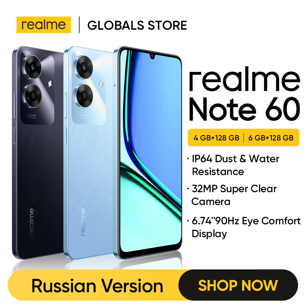 ريلمي نوت 60 النسخة الروسية 4 جيجابايت + 128 جيجابايت / 6 جيجابايت + 128 جيجابايت مع شاحن الاتحاد الأوروبي الأصلي!