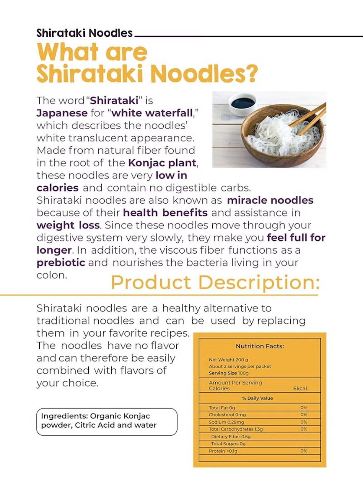 قوامها الخفيف والطري يجعلها إضافة متعددة الاستخدامات لأي وصفة، سواءً كنت تُحضّر نودلز مقلية، أو حساءً، أو سلطات، أو أطباقًا مستوحاة من المطبخ الآسيوي. مناسبة لأنظمة الكيتو ، والأنظمة منخفضة الكربوهيدرات ، والخالية من الغلوتين ، والنباتية ، فهي تُتيح لك طريقة سهلة للاستمتاع بوجباتك المفضلة دون الشعور بالذنب.