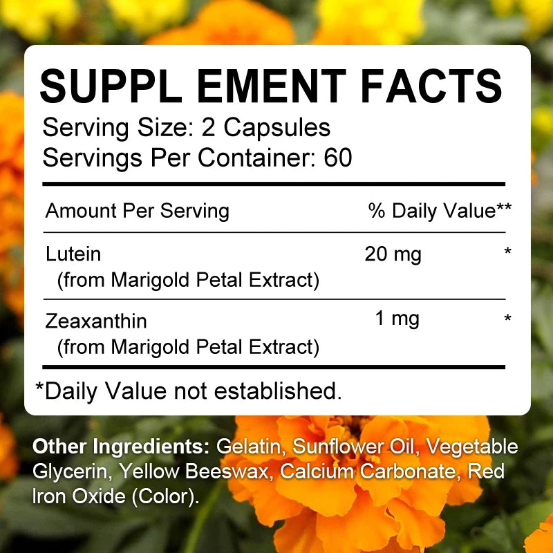 ❤️تركيبة صحة العين: تحتوي كبسولات اللوتين والزياكسانثين على اللوتين، وهو فيتامين أساسي للعين يوفر العناصر الغذائية لشبكية العين ومنطقة البقعة الصفراء والفطريات والرؤية.