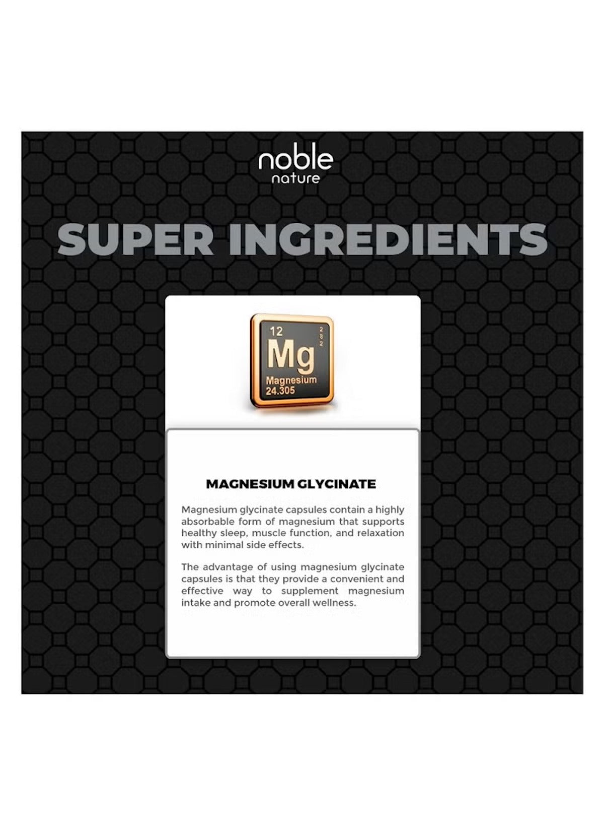 Magnesium is an essential mineral that supports over 300 biochemical processes in the body, including nerve and muscle function, bone strength, and cardiovascular health. This supplement helps promote relaxation, improve sleep quality, support heart and nerve function, and reduce muscle cramps and fatigue.
