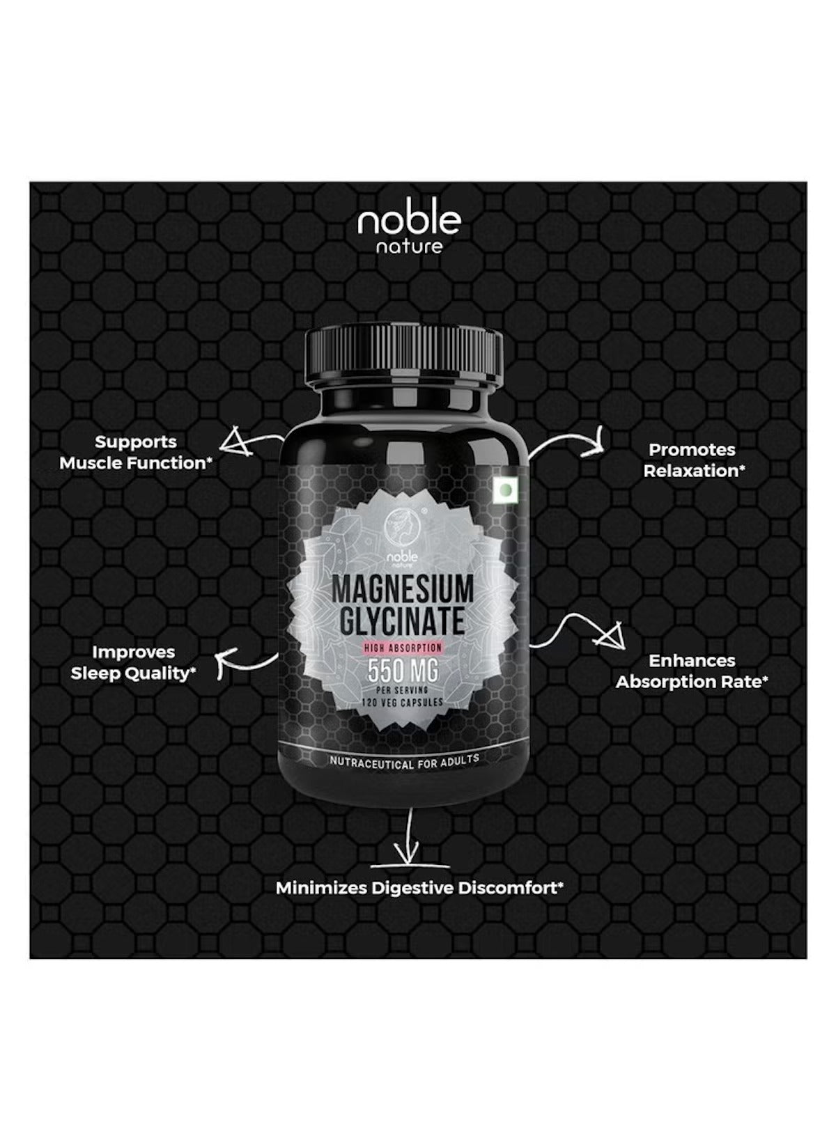 Experience optimal magnesium support with Magnesium Glycinate High Absorption 550mg, formulated for maximum bioavailability and gentle digestion. Each capsule contains a highly absorbable form of magnesium — magnesium glycinate — known for its superior tolerance and effectiveness.