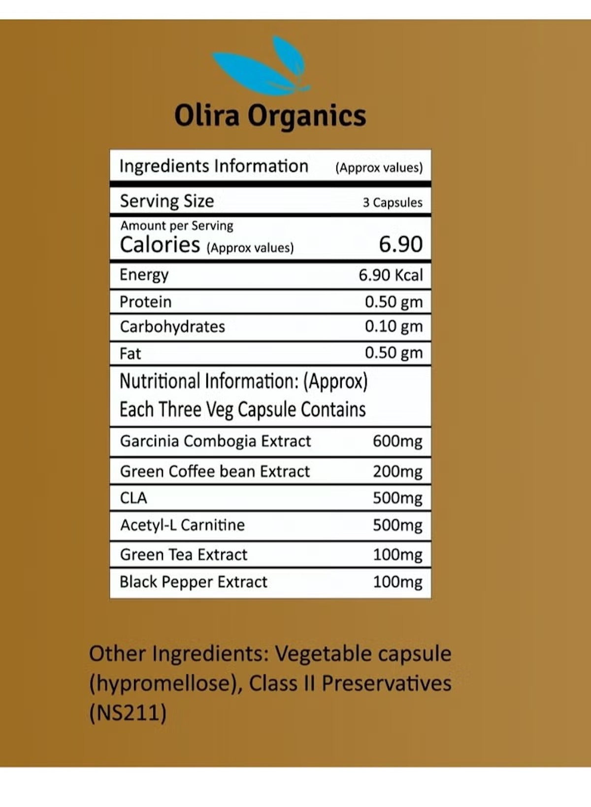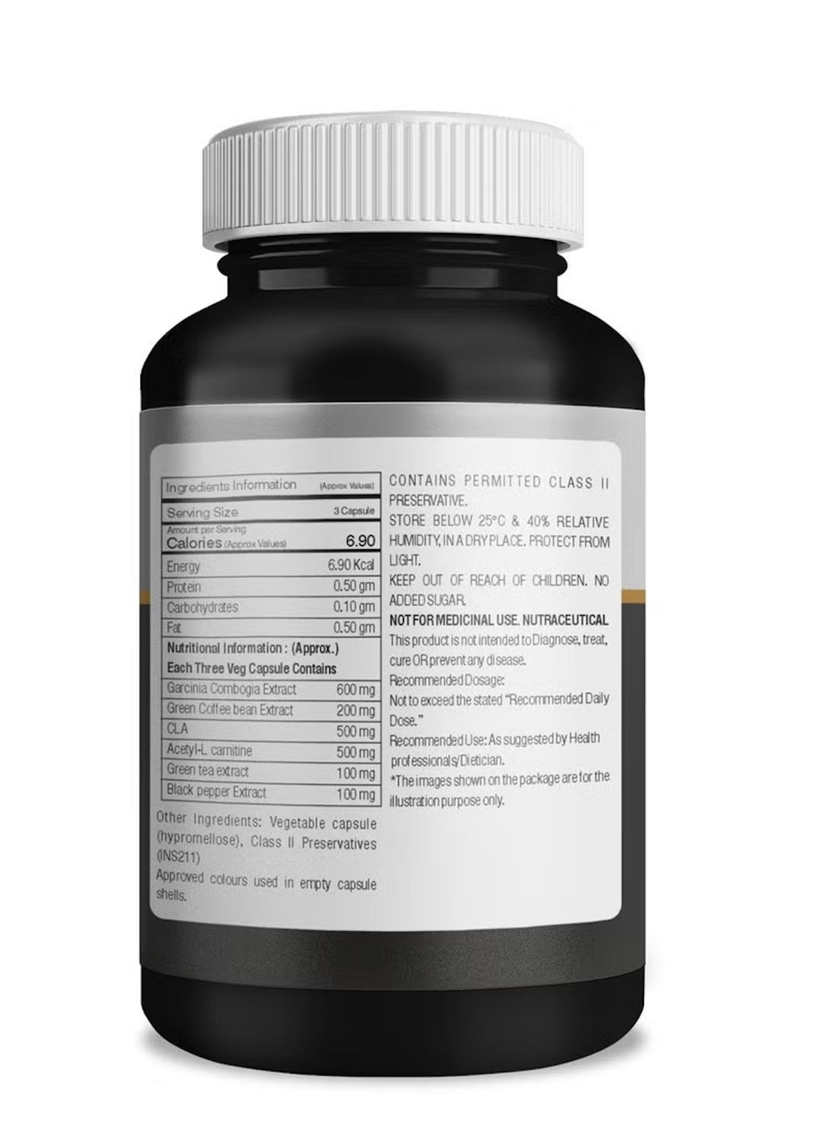 تركيبة متقدمة لإدارة الوزن: تجمع بين الجارسينيا والقهوة الخضراء وحمض اللينوليك المترافق وإل كارنيتين لتعزيز عملية التمثيل الغذائي للدهون وتقليل الوزن.