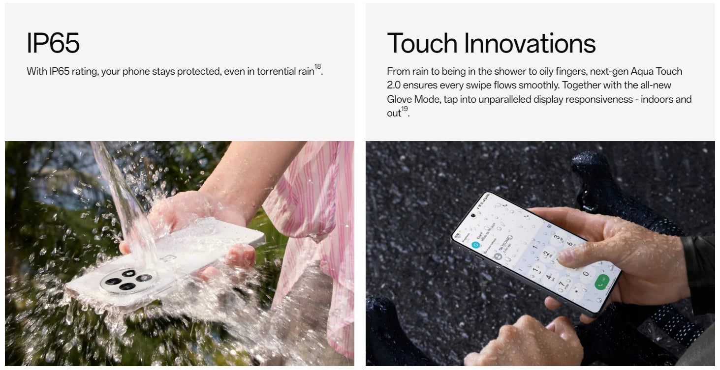 بفضل تصنيف IP65، يظل هاتفك محميًا، حتى في حالة هطول الأمطار الغزيرة.