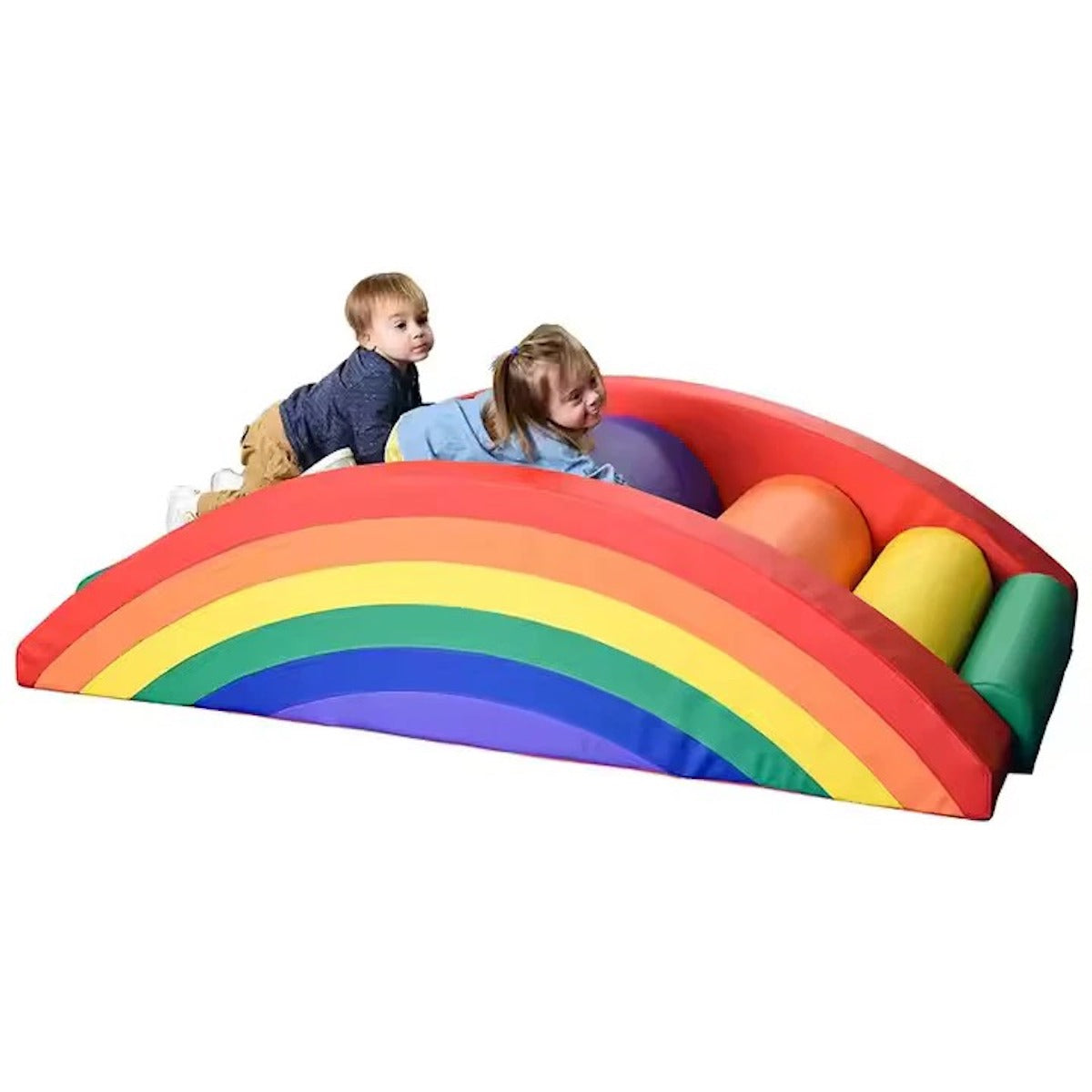 أضفِ الألوان والمرح واللعب النشط إلى مساحة طفلك مع مجموعة ألعاب جسر قوس قزح الناعمة ! مصنوعة من إسفنج عالي الجودة وغير سام، توفر هذه المجموعة الناعمة بيئة آمنة ومريحة للأطفال للتسلق والانزلاق والقفز. تصميمها النابض بالحياة بألوان قوس قزح يُلهم الإبداع ويشجع على اللعب النشط الذي يدعم تنمية المهارات الحركية. مثالية للمنازل، ومراكز الرعاية النهارية، ودور الحضانة، وغرف اللعب الداخلية، هذه المجموعة متعددة الاستخدامات سهلة الصيانة مع أسطح قابلة للمسح لسهولة التنظيف.