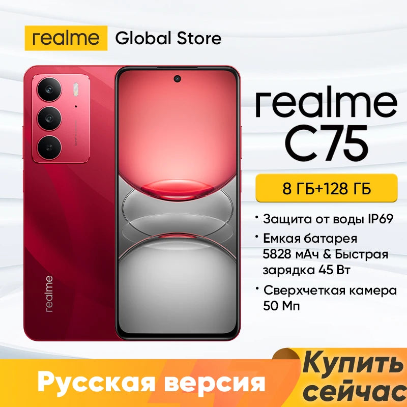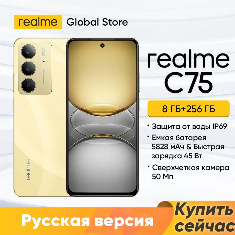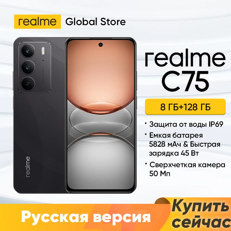 realme C75 النسخة الروسية 8GB+128GB/8GB+256GB مع شاحن الاتحاد الأوروبي الأصلي!