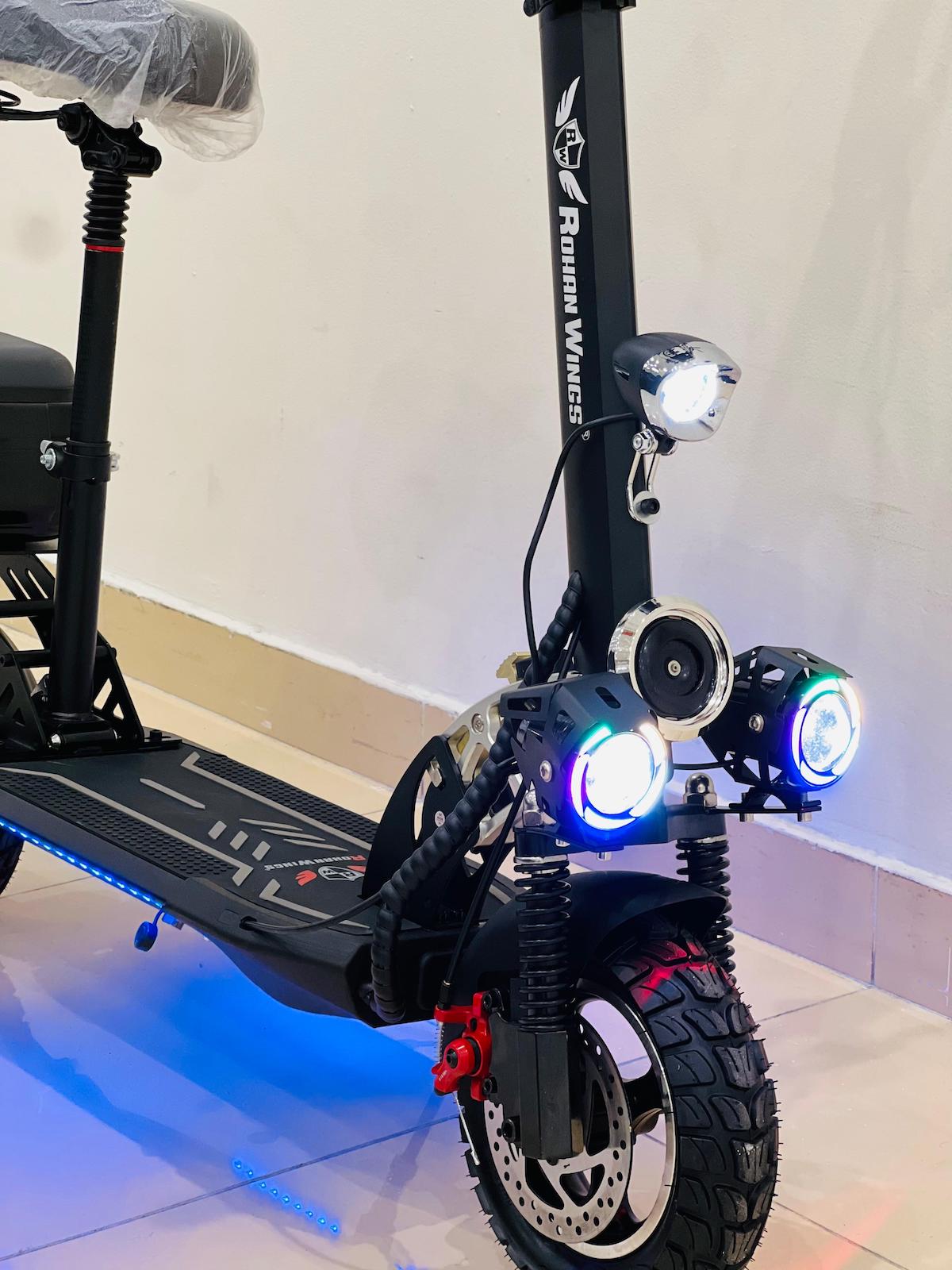 Discover power, durability, and style with the RohaN Wings KT5D Electric Scooter. Designed for both city and off-road riding, it features a robust 1800W/450W brushless motor and a high-capacity 48V 13Ah LT battery, delivering outstanding performance and reliability. Built with a solid frame, 10.5-inch off-road or city tires, and a sleek design, this scooter ensures a smooth, stable, and exciting ride wherever you go.