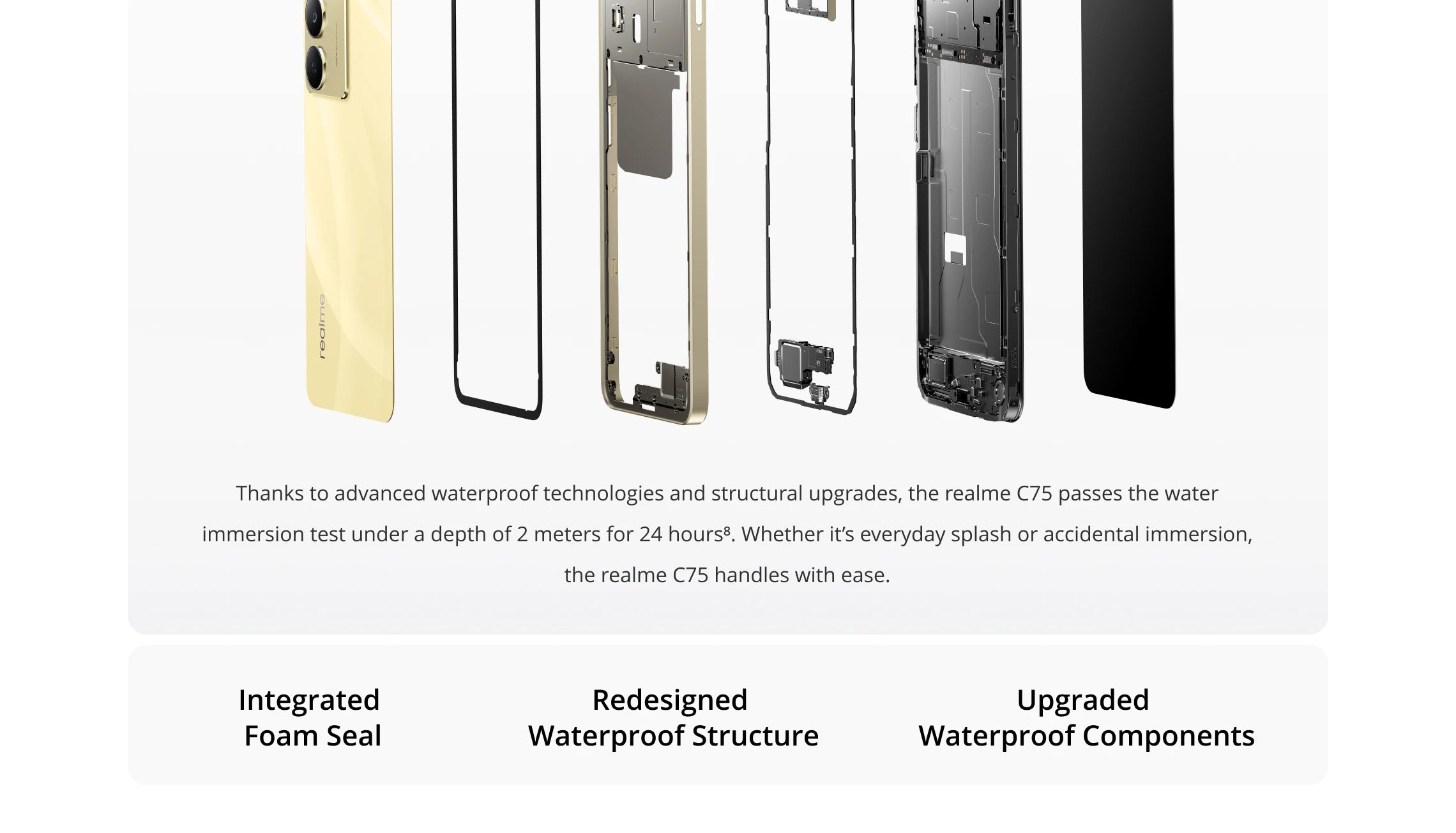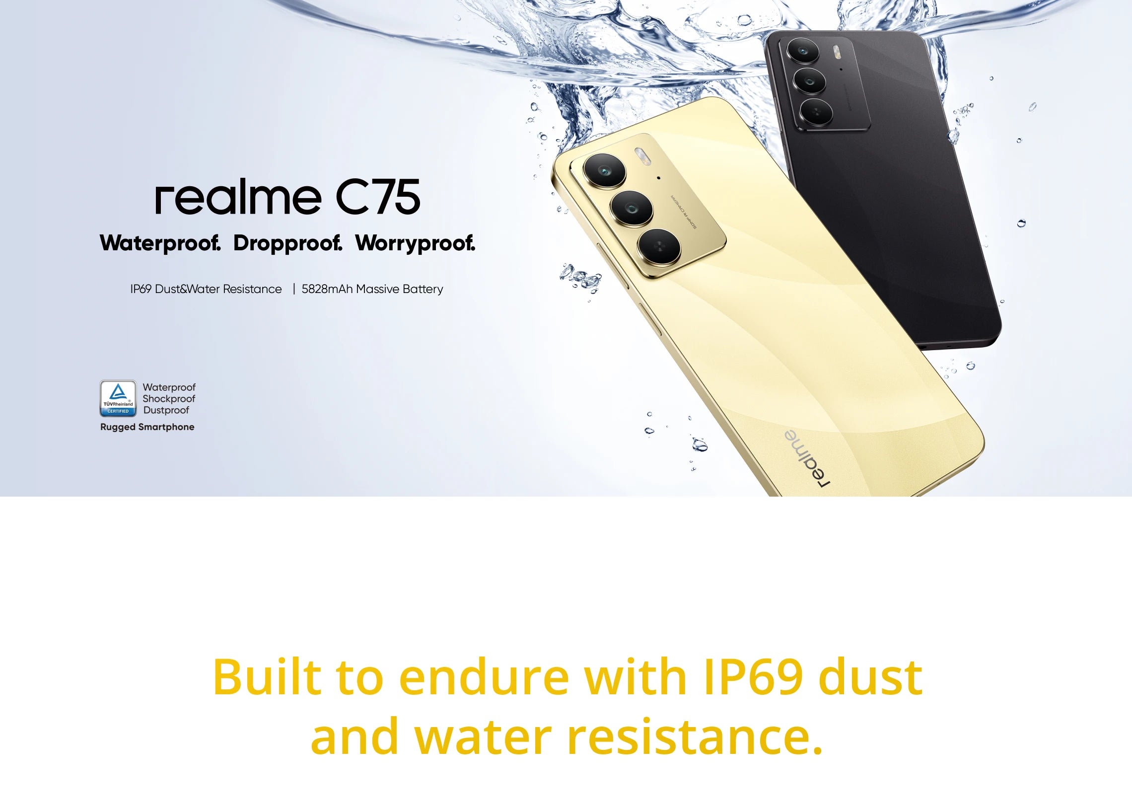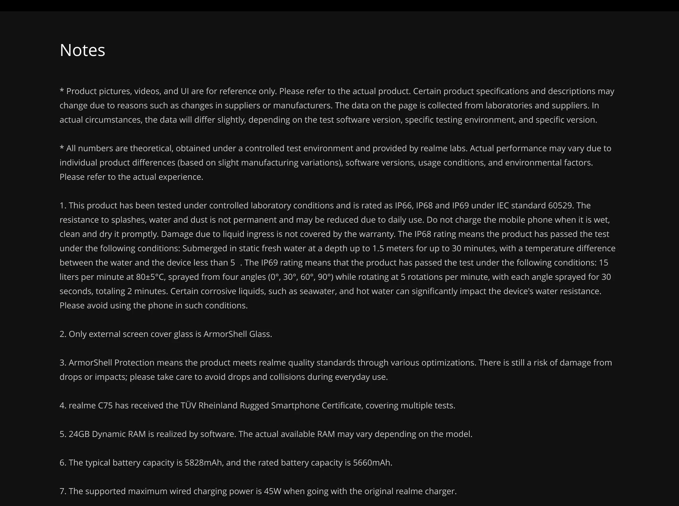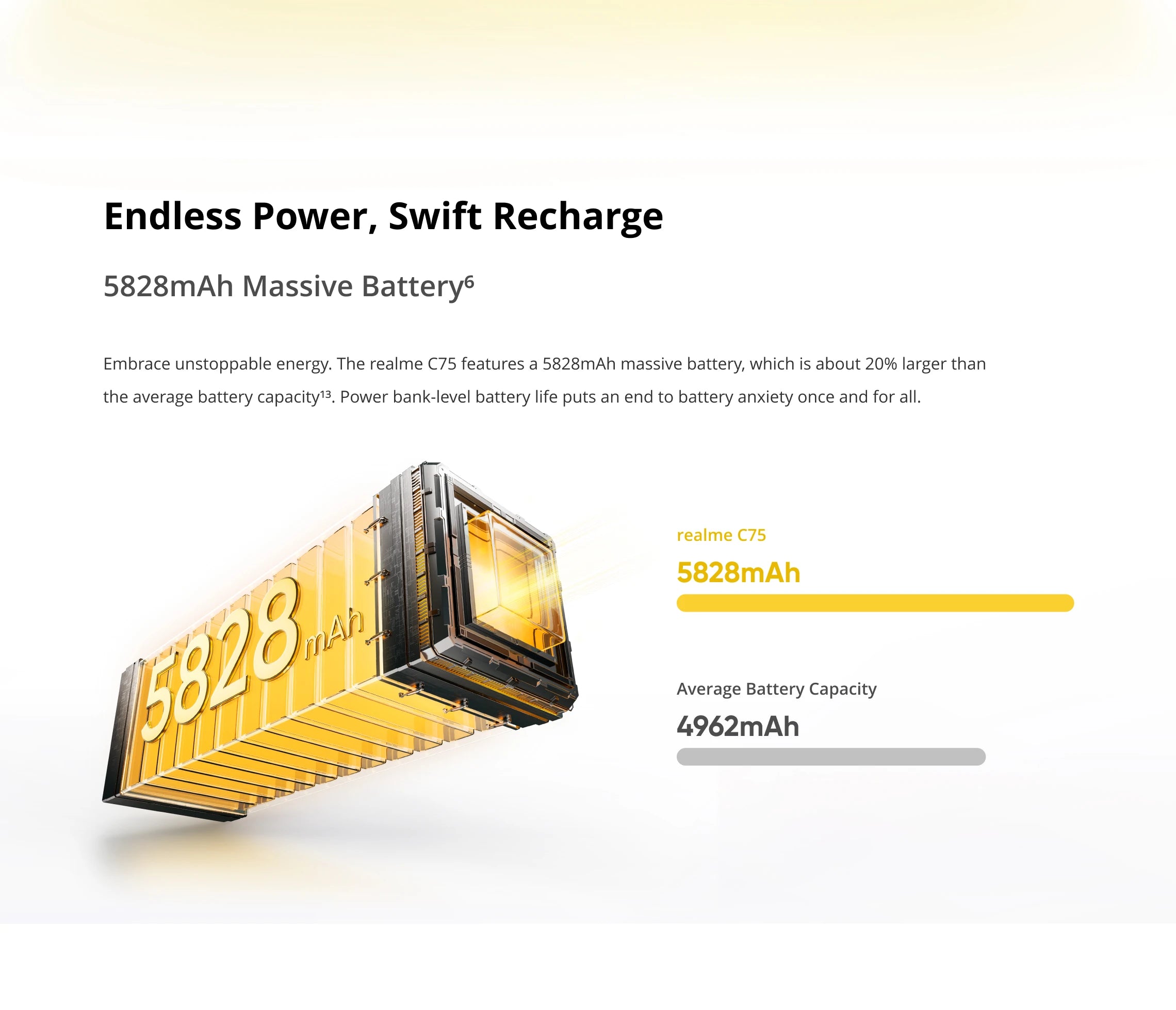 realme C75*1، كابل USB من النوع C*1، محول 45 واط*1، حافظة حماية*1، إبرة بطاقة SIM*1، دليل سريع*1، معلومات مهمة عن المنتج (بما في ذلك بطاقة الضمان)*1