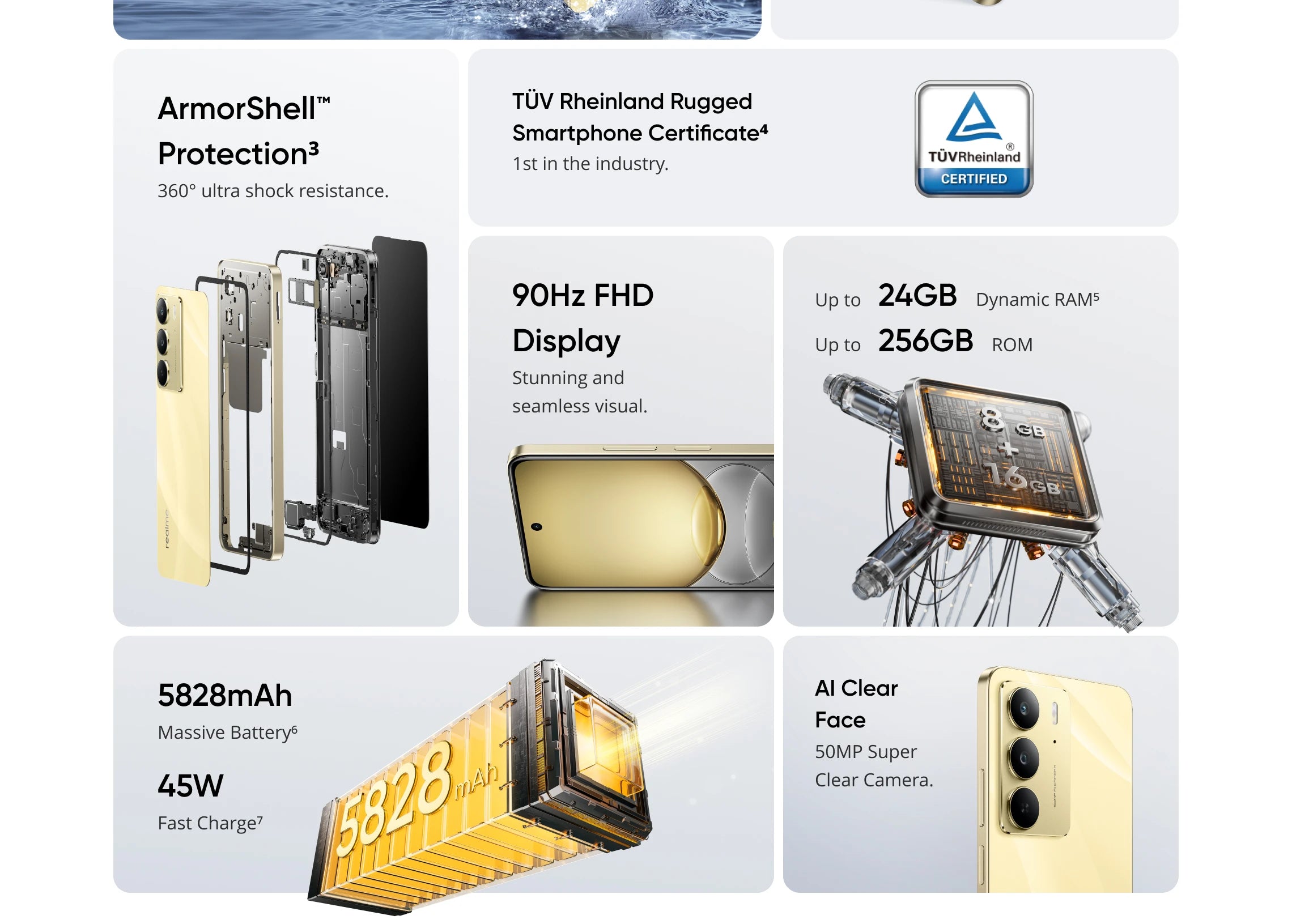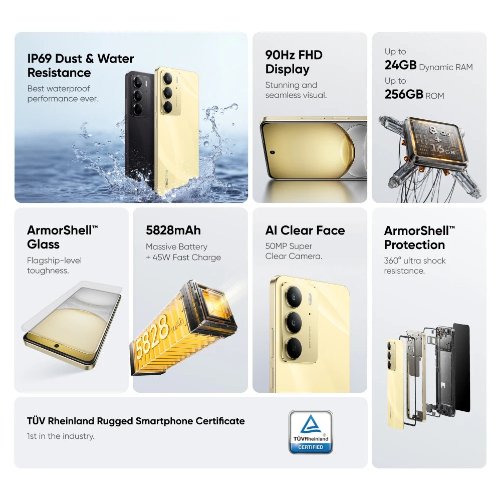 نظام التشغيل-------------- realme UI 5.0 (يعتمد على Android 14)؛ دعم متعدد اللغات وGoogle Play وGoogle Pay