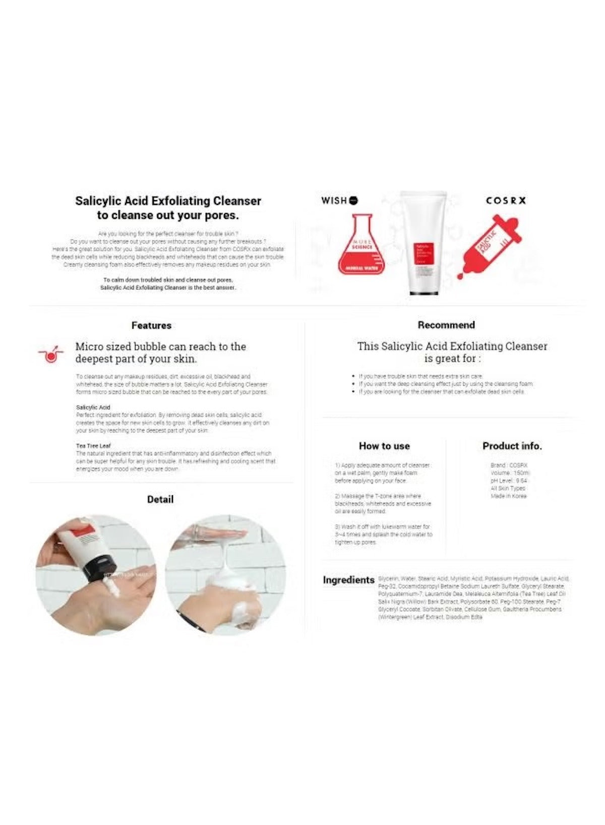 This creamy foaming cleanser deeply purifies pores, helping to prevent blackheads, whiteheads, and acne breakouts through gentle exfoliation. The salicylic acid helps control sebum production, making it ideal for oily and combination skin types. It leaves your skin feeling clean, balanced, and smooth with a healthy matte finish.