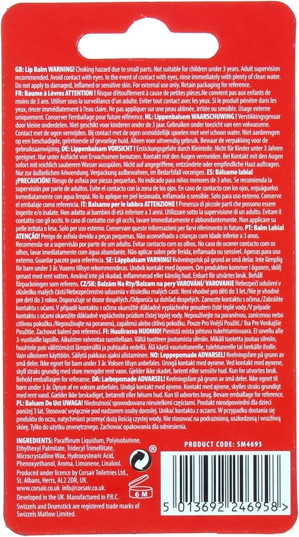 Keep your lips soft, smooth, and sweet with the Swizzels Drumstick Raspberry Lip Balm. Inspired by the classic Drumstick lolly, this lip balm delivers a delicious raspberry and creamy milk flavour while providing lasting hydration. Its smooth formula glides easily, locking in moisture for soft and nourished lips all day. Perfect for on-the-go use, it combines fun fragrance with effective lip care.