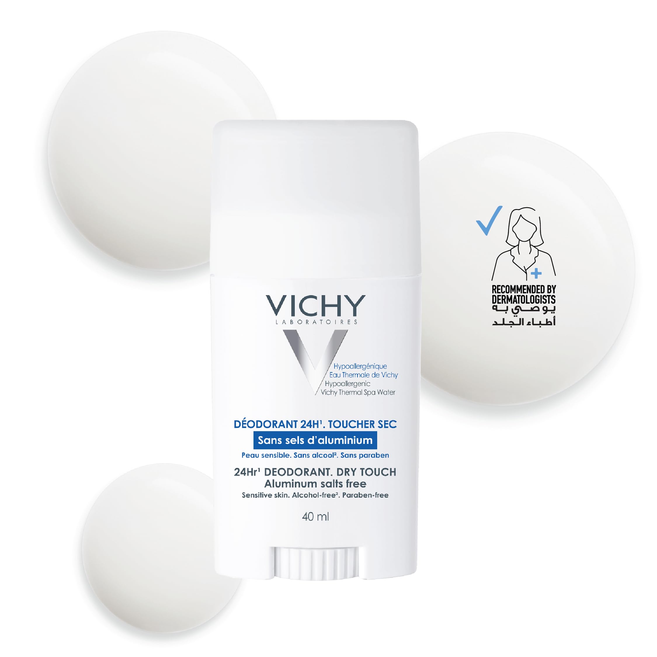 مزيل عرق لطيف وخالي من الألومنيوم من فيشي لمنطقة الإبط الحساسة. يوفر حماية من الروائح الكريهة تدوم ٢٤ ساعة، بينما يهدئ ويرطب البشرة الحساسة بمكونات غنية بالمعادن. تركيبة خفيفة وغير لزجة، مناسبة للاستخدام اليومي.
