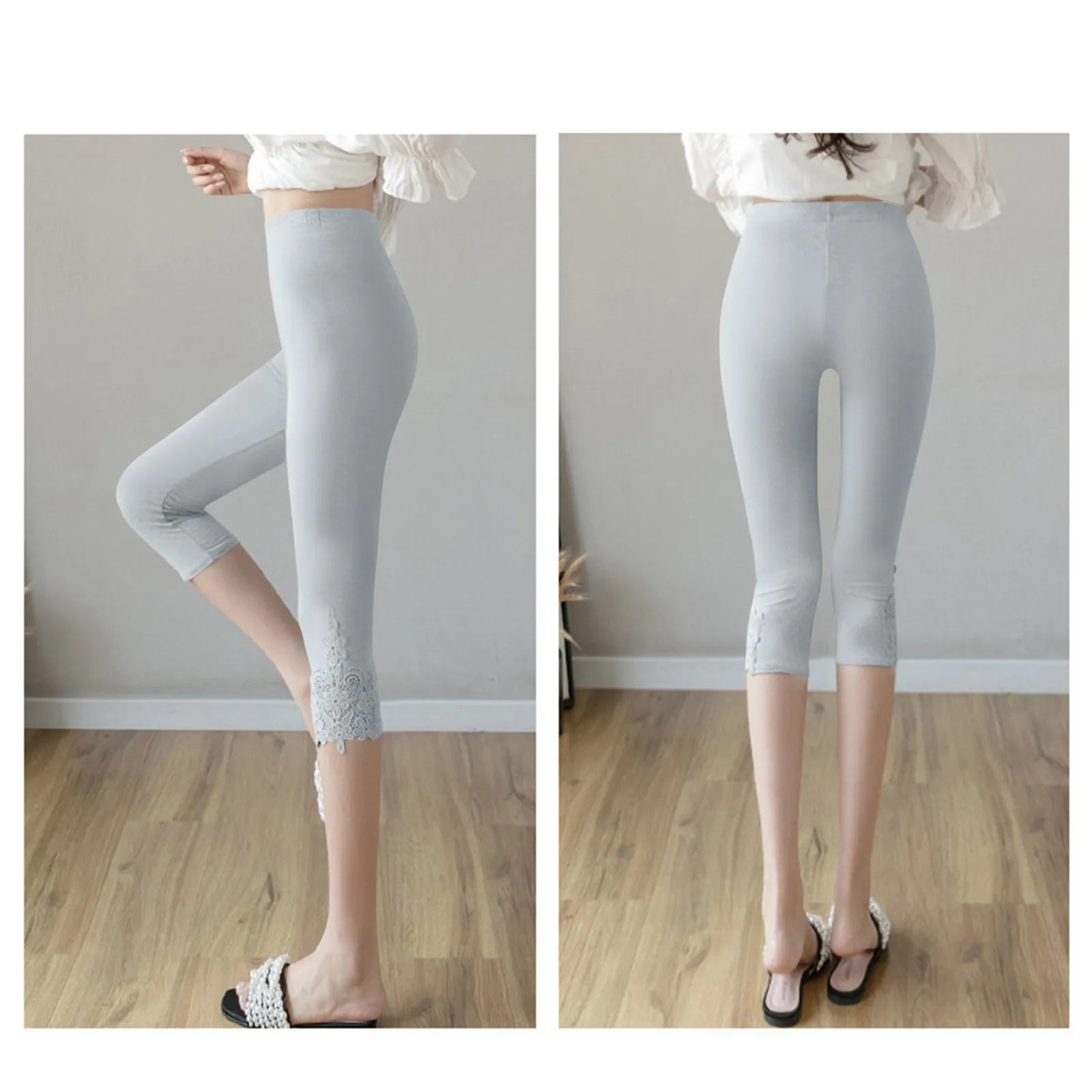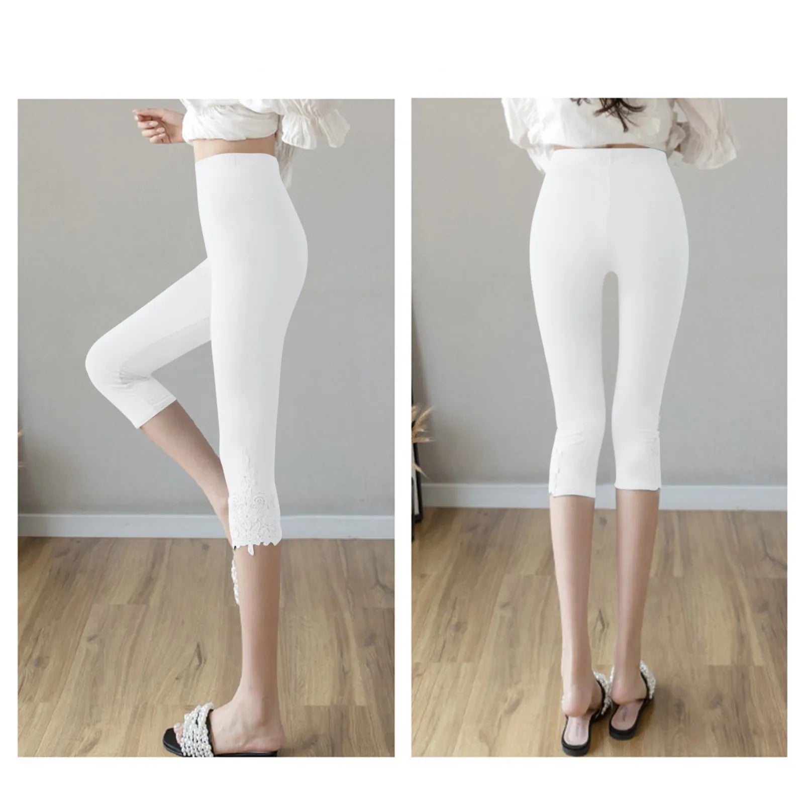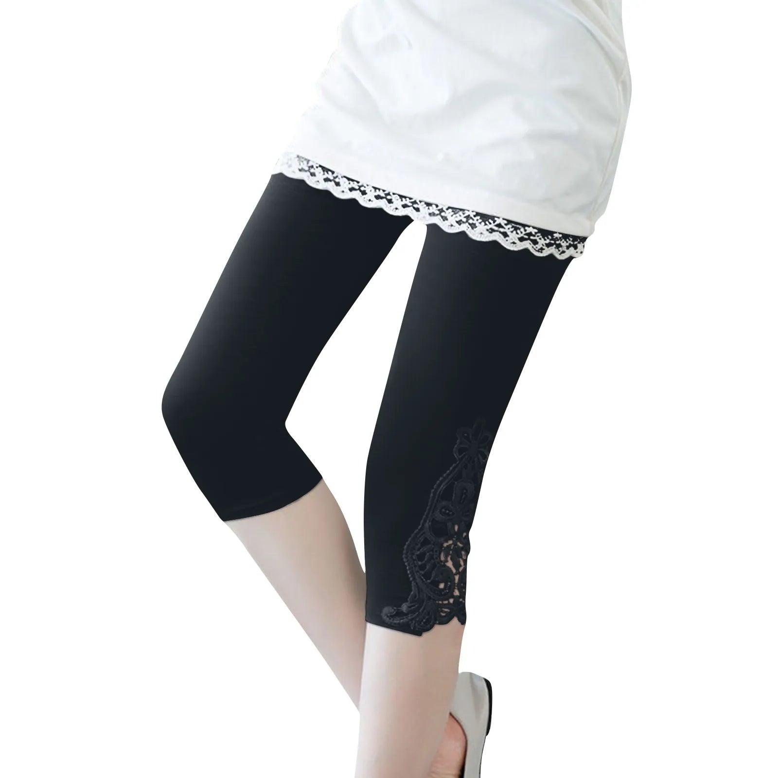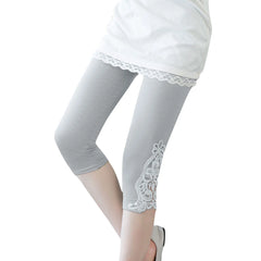 بنطلون نسائي كاجوال أنيق من الدانتيل بلون سادة من الأسفل