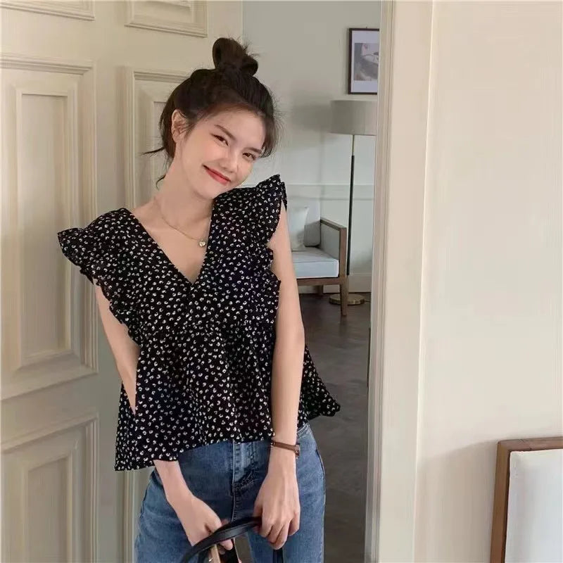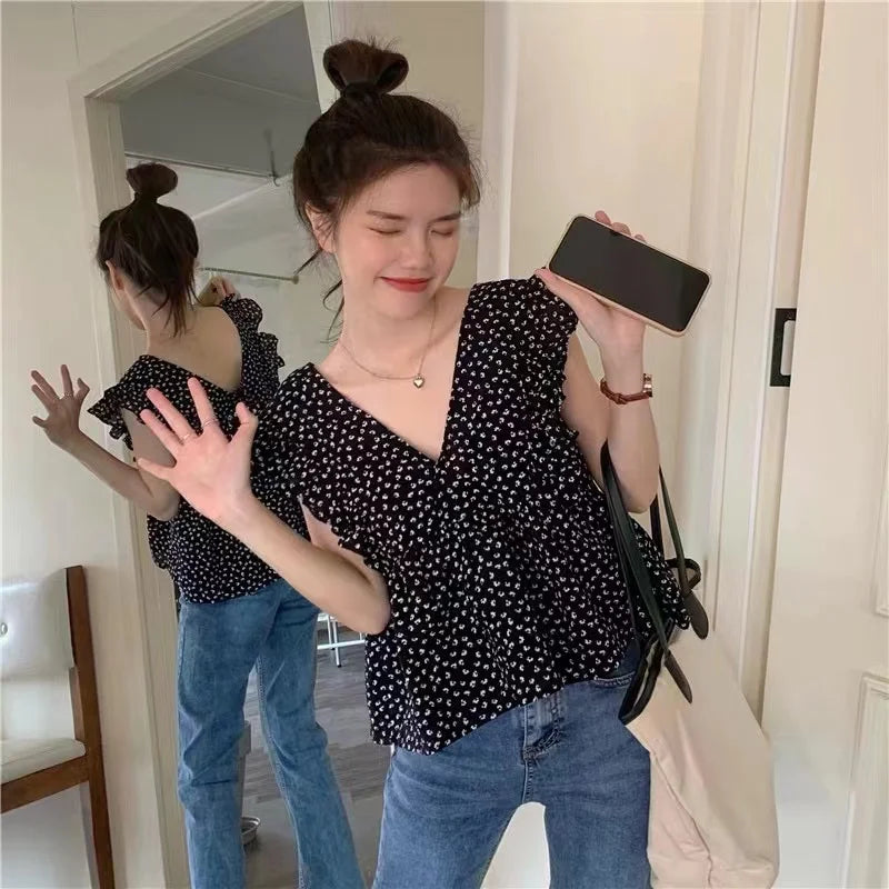 يتميز هذا القميص بتصميم رقبة على شكل حرف V على الطراز الفرنسي، مما يضيف لمسة من الأناقة والرقي إلى خزانة ملابسك الصيفية.