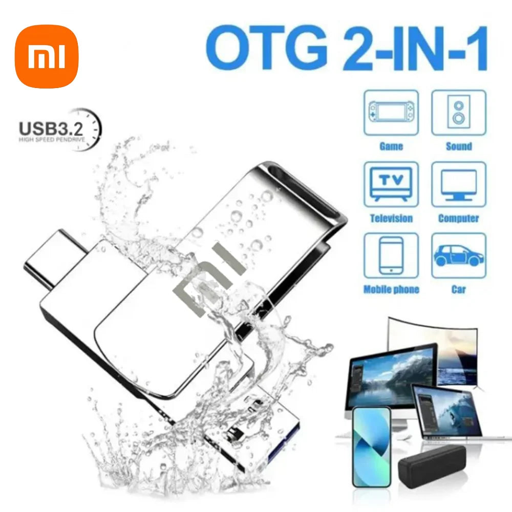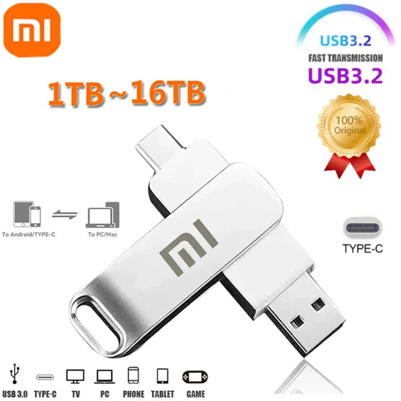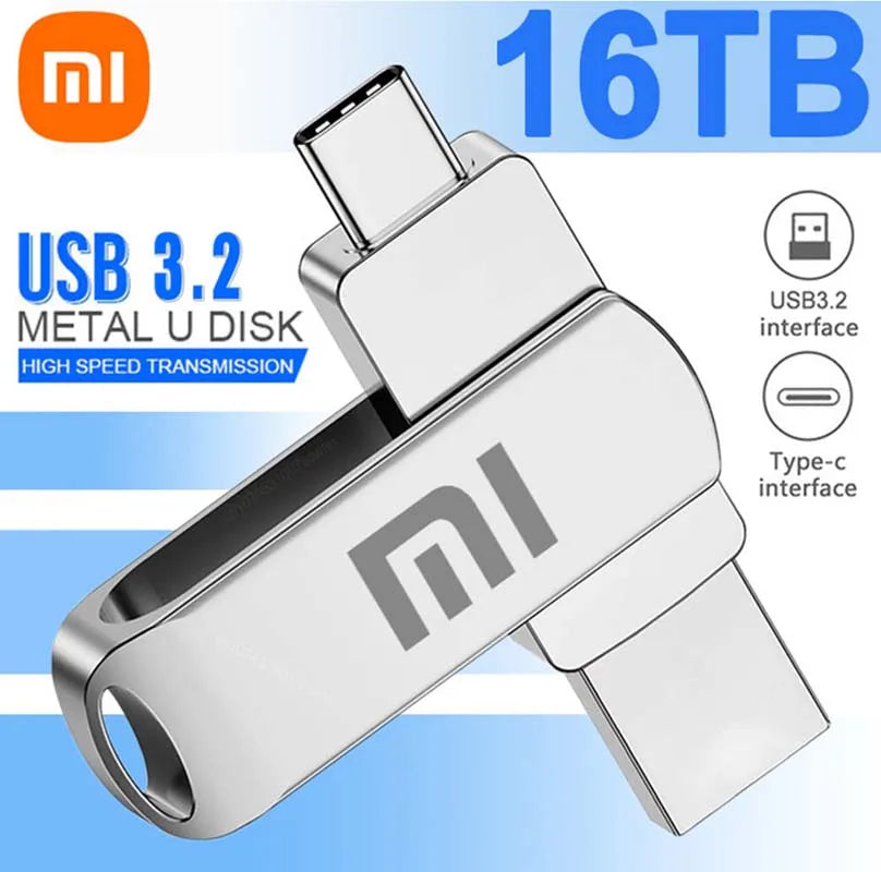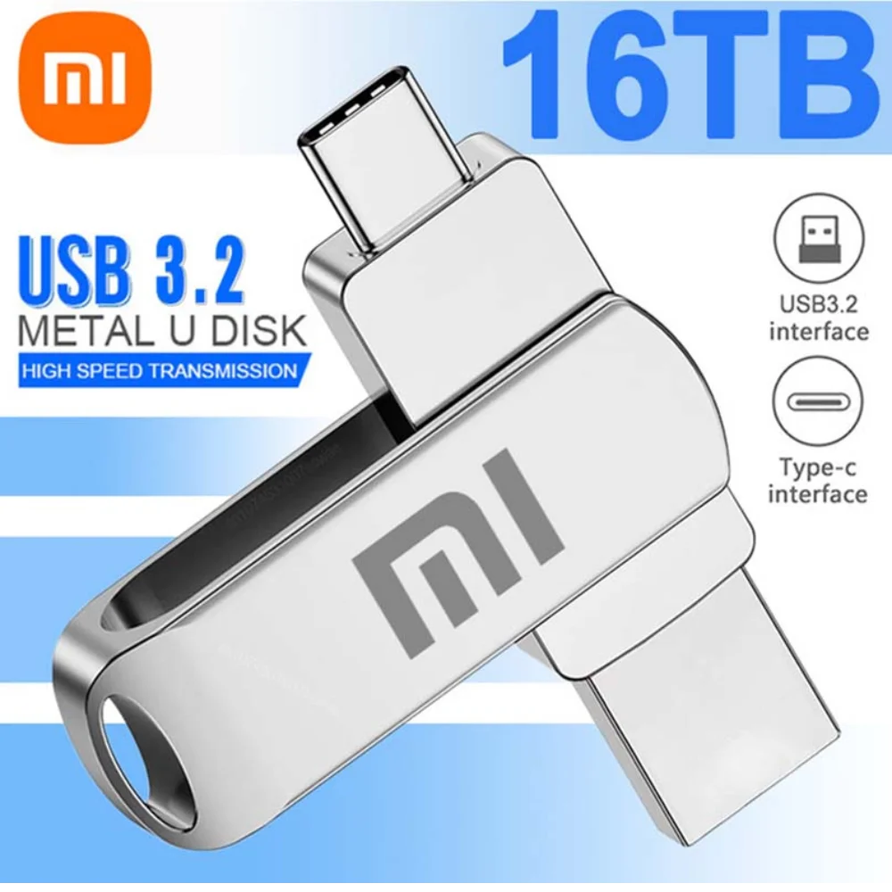 محرك أقراص فلاش USB 3.2 من شاومي بسعة 16 تيرابايت، مقاوم للماء، عالي السرعة، نوع سي، 2 في 1