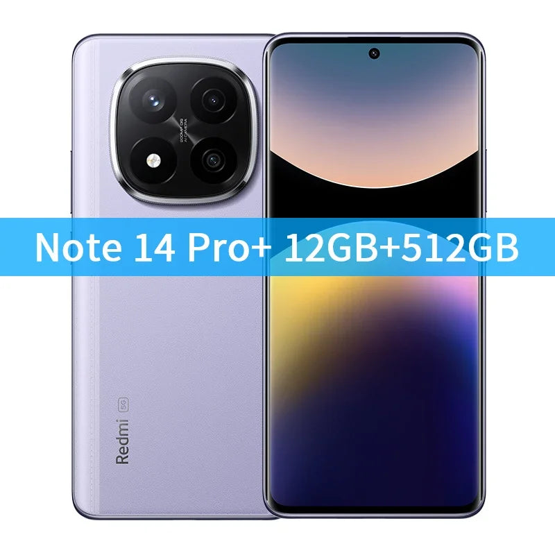 النسخة العالمية من هاتف شاومي ريدمي نوت 14 برو+ 5G الذكي، كاميرا 200 ميجابكسل AI، شحن فائق 120 واط، بطارية 5110 مللي أمبير، شاشة 1.5 كيلو هيرتز، IP68