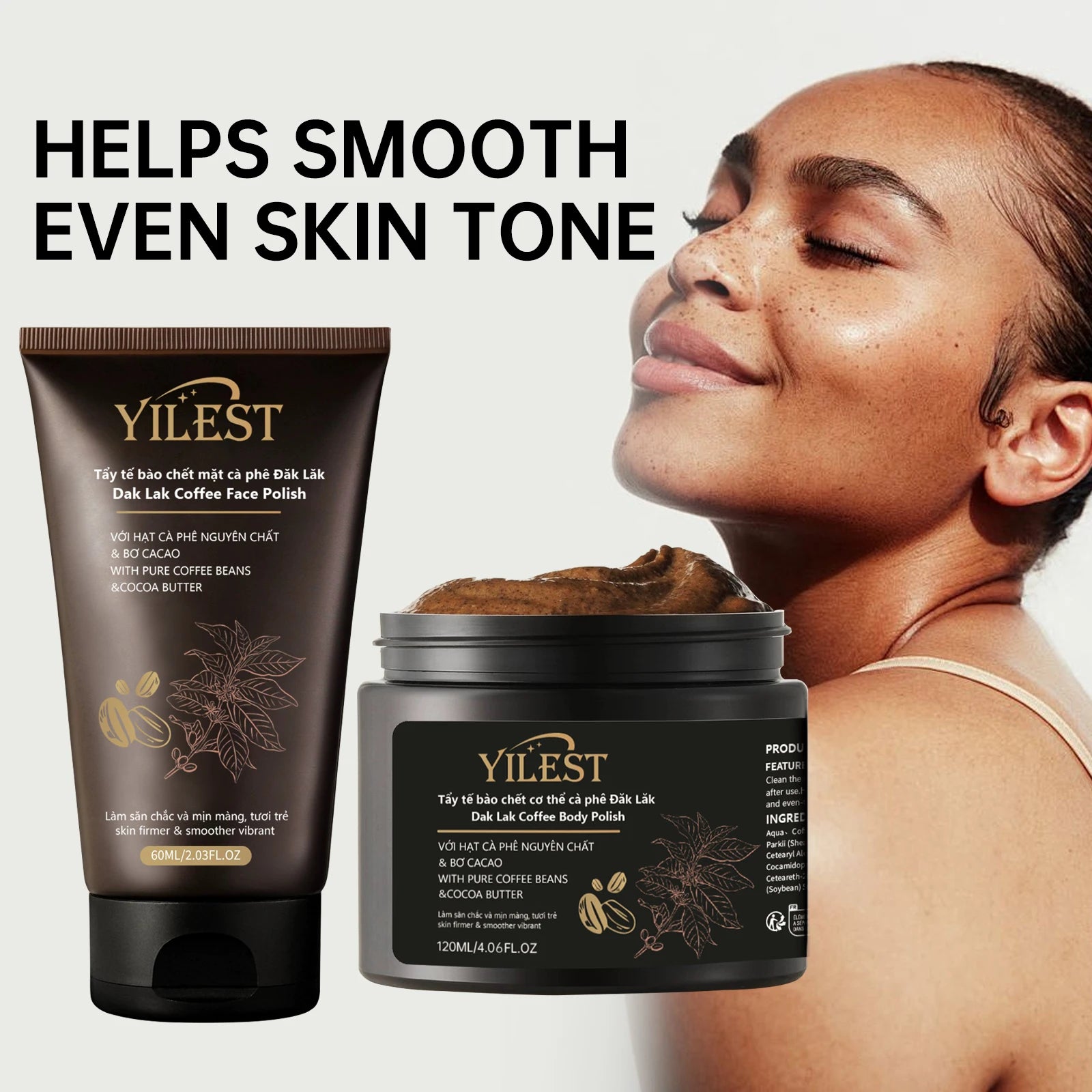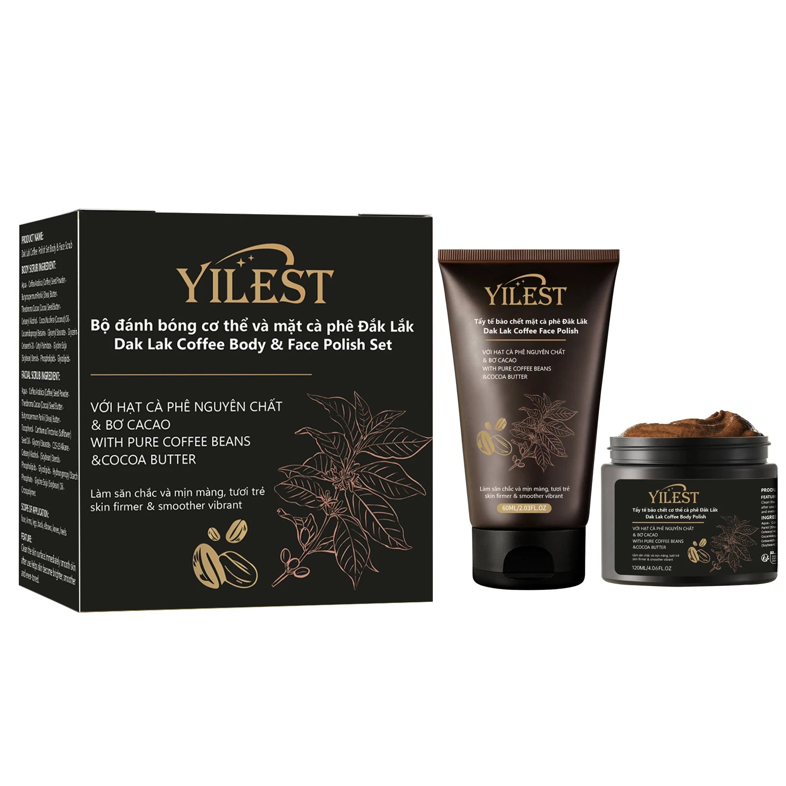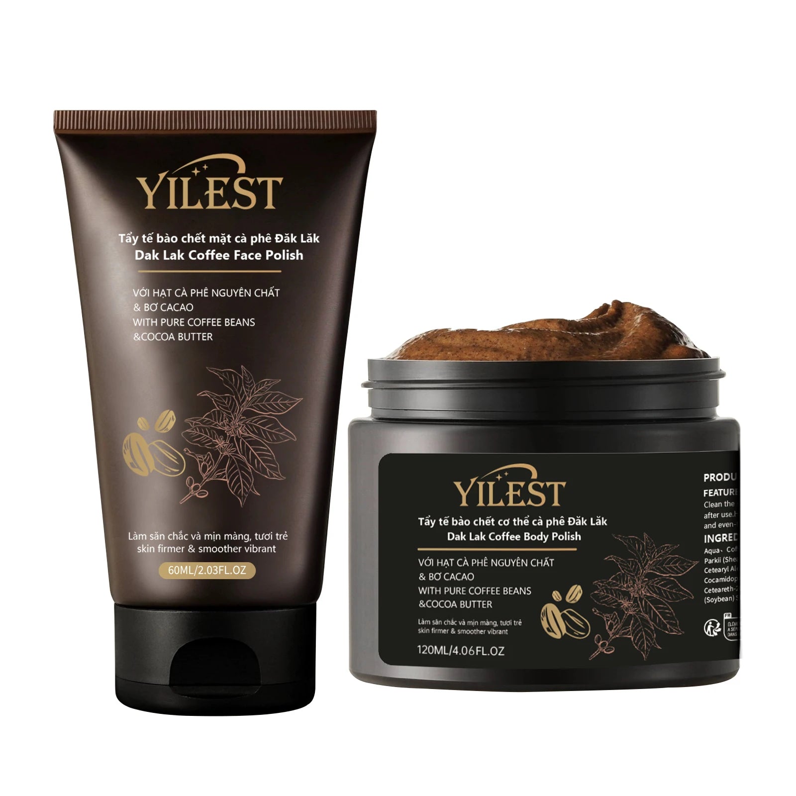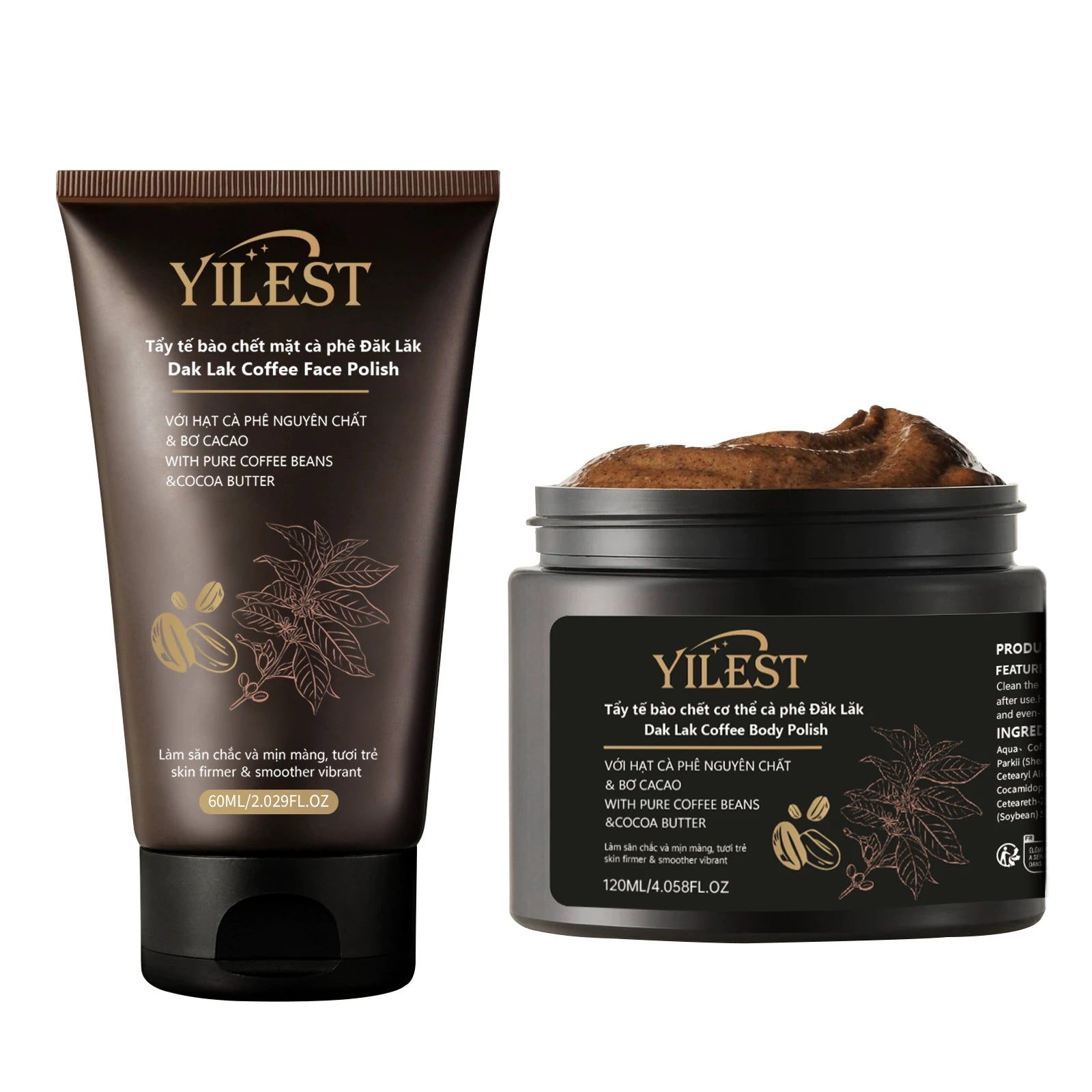 مجموعة مقشر الوجه والجسم الفاخر من ييلست بالقهوة - مقشر طبيعي، ملمع للبشرة لبشرة ناعمة ومشدودة (60 مل + 120 مل)