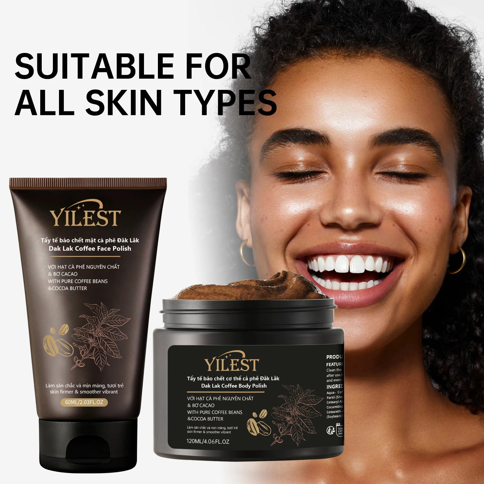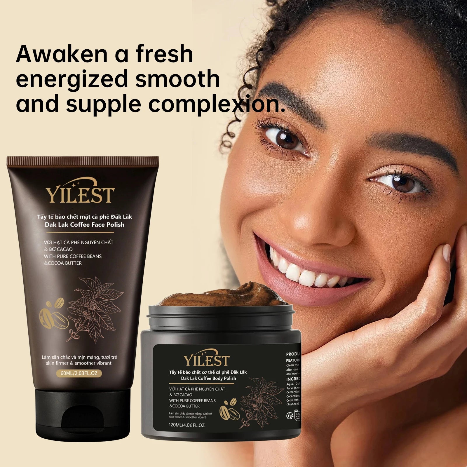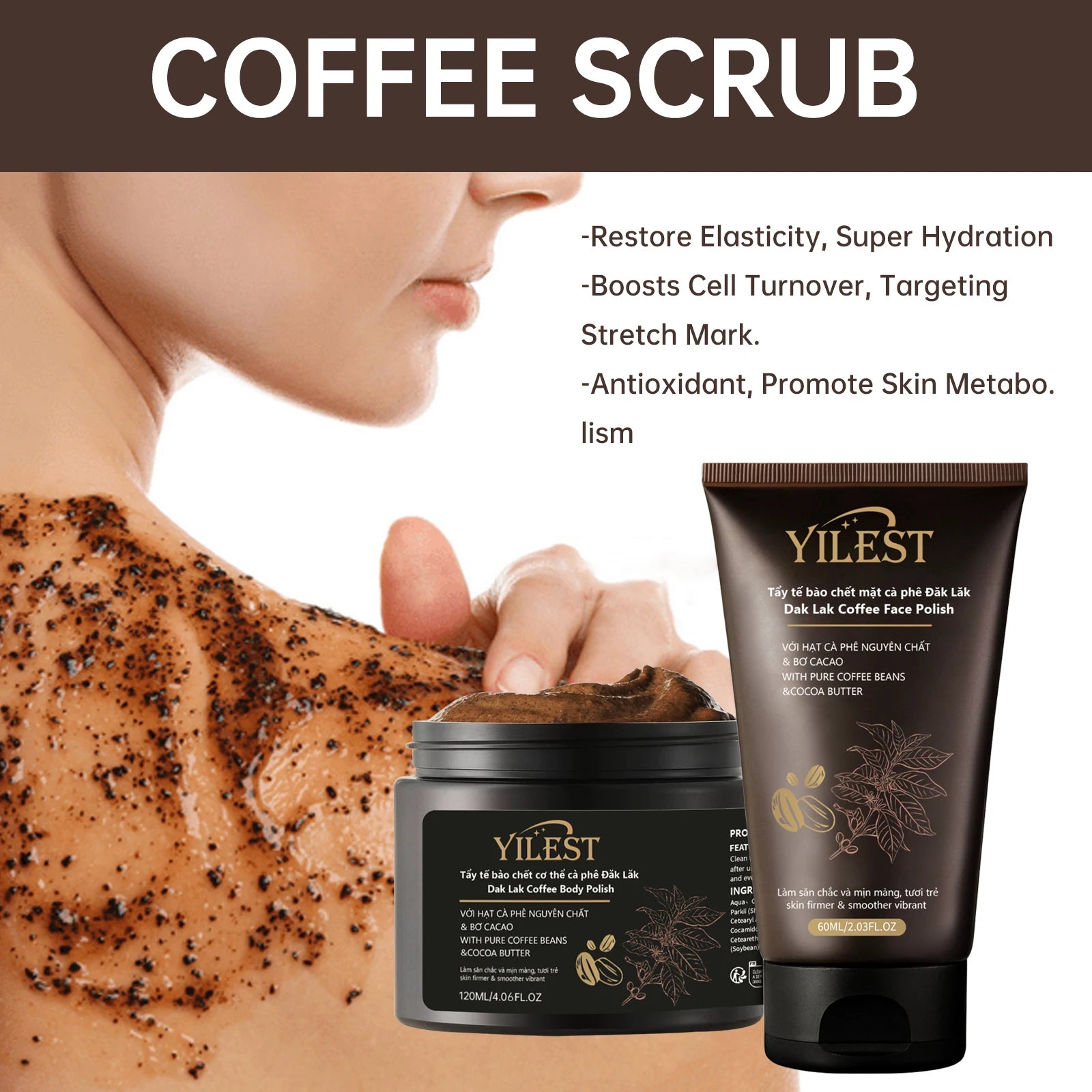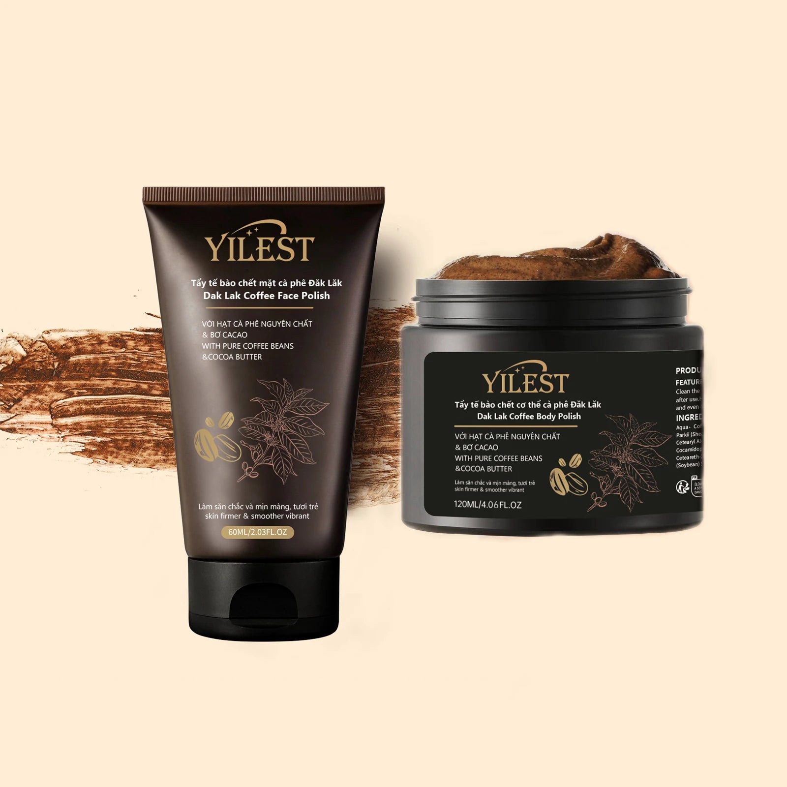 مجموعة مقشر الوجه والجسم الفاخر من ييلست بالقهوة - مقشر طبيعي، ملمع للبشرة لبشرة ناعمة ومشدودة (60 مل + 120 مل)