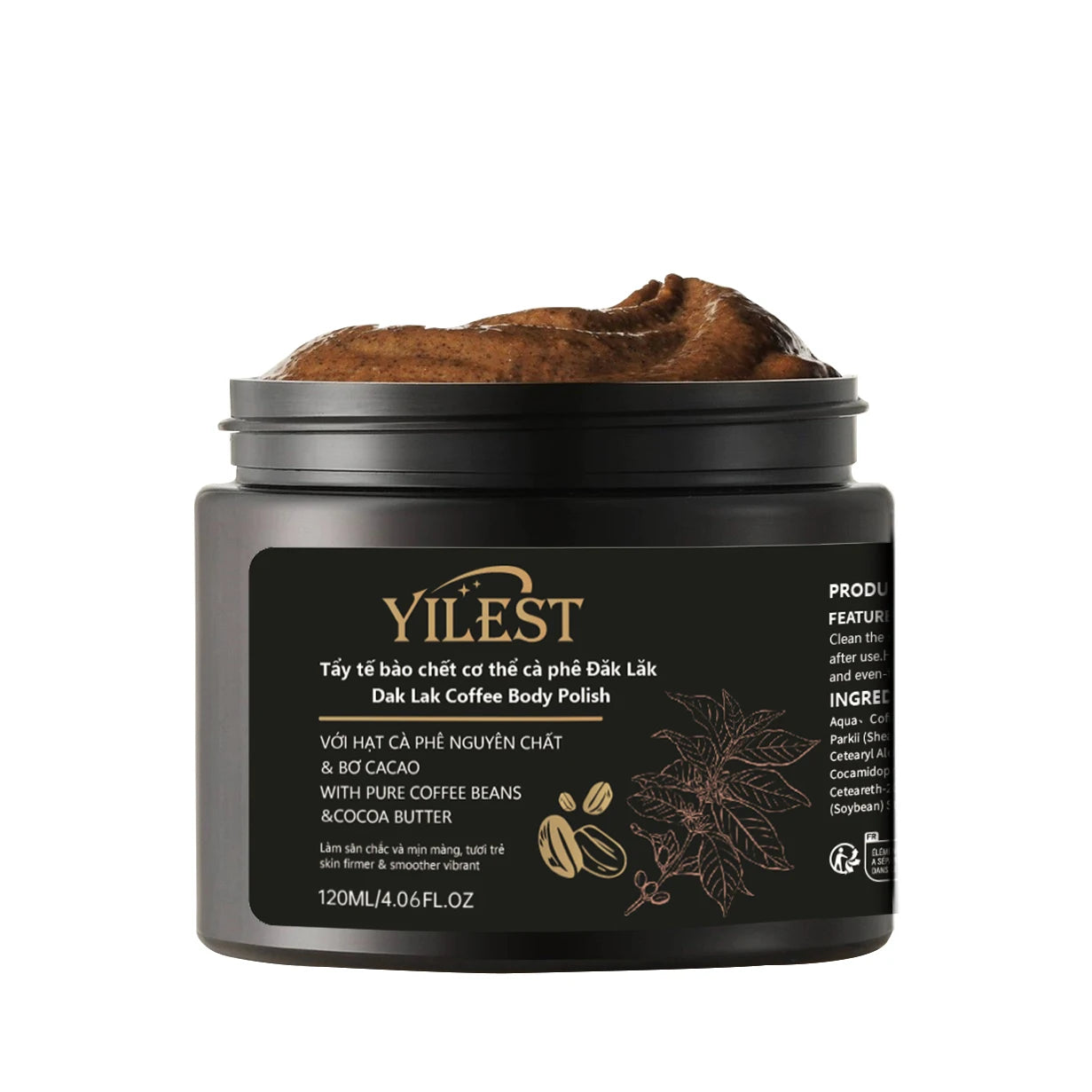 ✨مكونات طبيعية 100% - غنية بحبوب قهوة داك لاك النقية وزبدة الكاكاو المغذية لتعزيز مرونة البشرة وترطيبها.