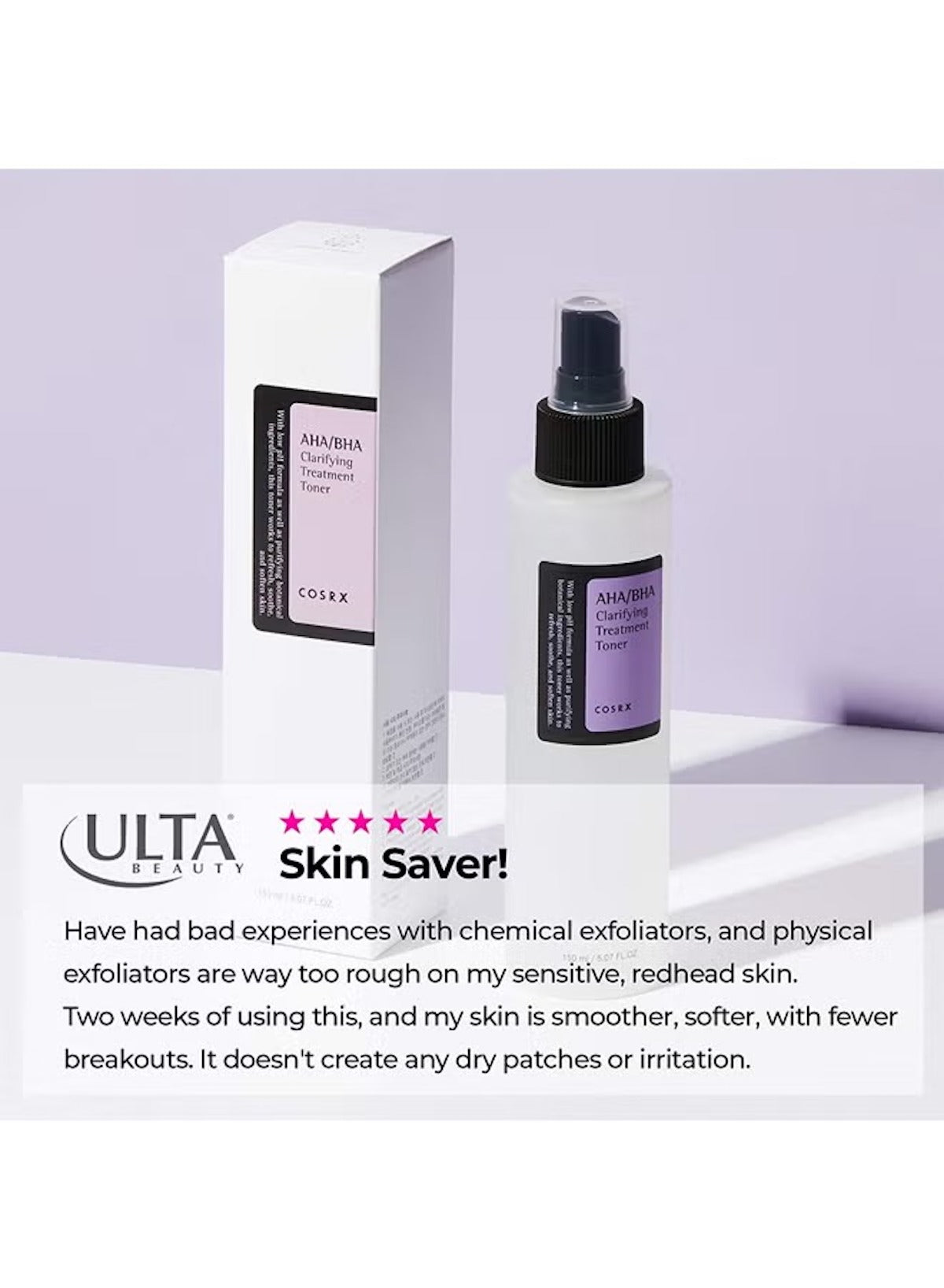 Reveal smoother, clearer, and more radiant skin with the AHA/BHA Clarifying Treatment Toner — a gentle exfoliating toner designed to refine skin texture and restore balance. This refreshing liquid formula helps remove dead skin cells, excess sebum, and impurities, leaving your skin fresh, clean, and ready to absorb your next skincare steps.