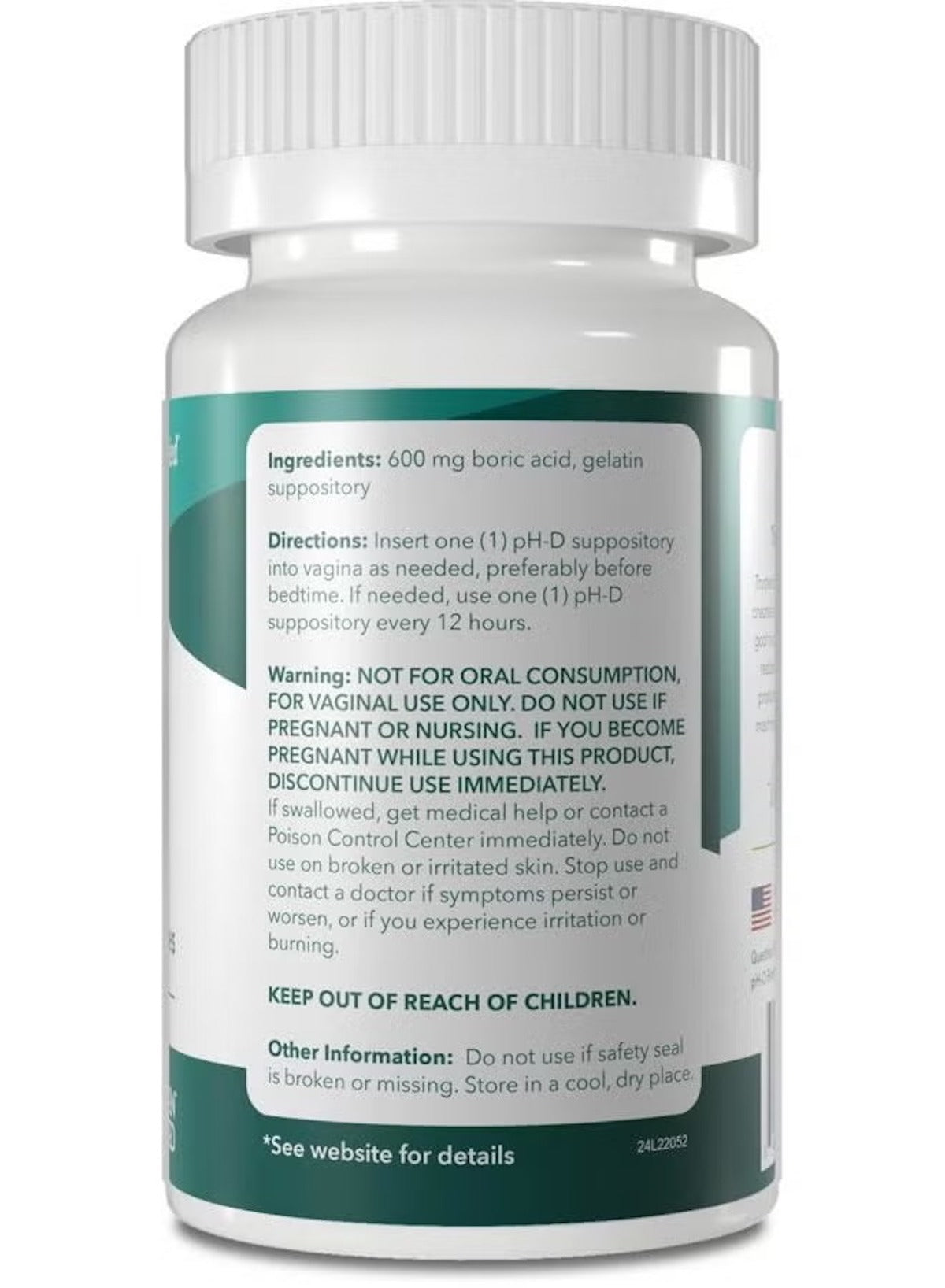 Holistic Solution: Each suppository contains 600 mg of pure boric acid for natural vaginal balance.