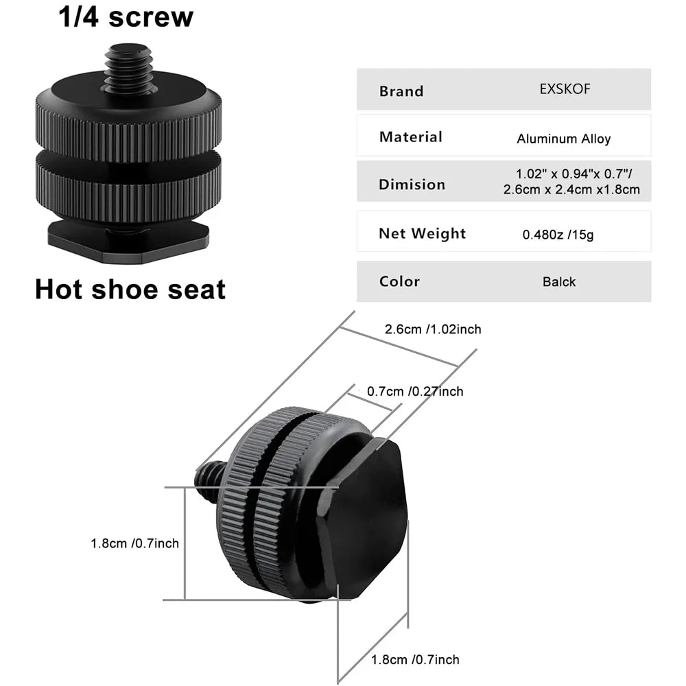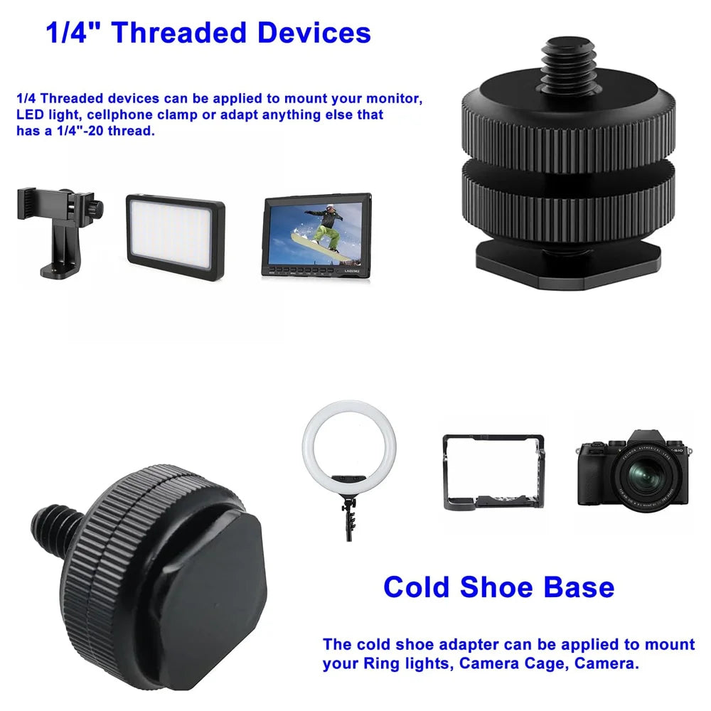 1/4 Hot Shoe Mount Holder Dual Nut Cold Shoe Adapter Bracket For Double-Layer Camera Hot Shoe Adapter Action Camera Accessories