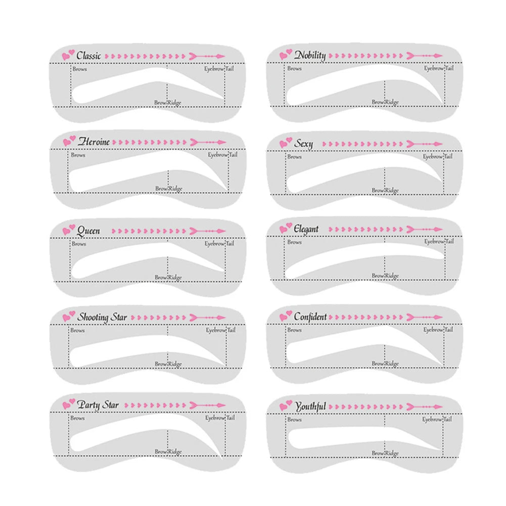 DIY Reusable Eyebrow Template Grooming Shaper Durable Eyebrow Drawing Stencil Kit Hairline Brow Stamp Gift Cosmetic Accessories for Beginners Women Girl
