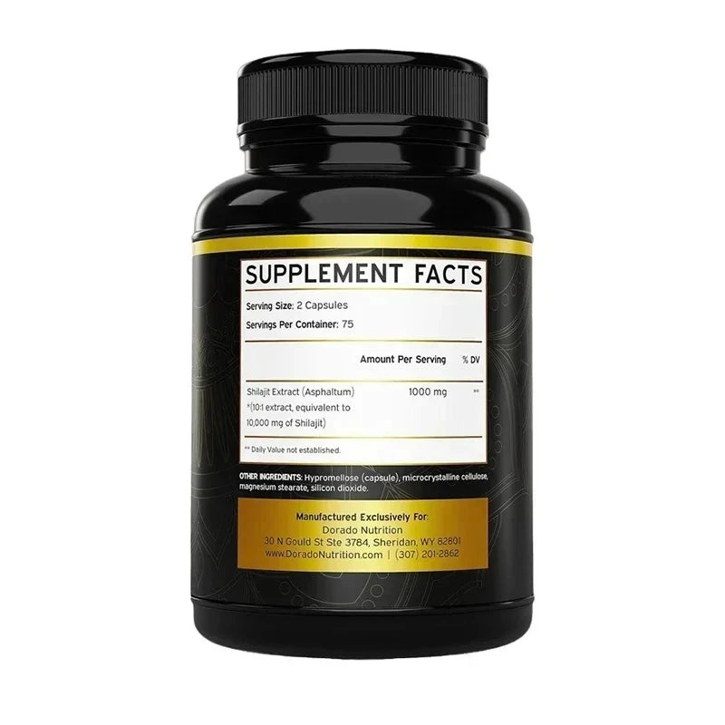 10,000mg Himalayan Pure Shilajit in 150 capsules, blended with fulvic acid & 85+ trace minerals.