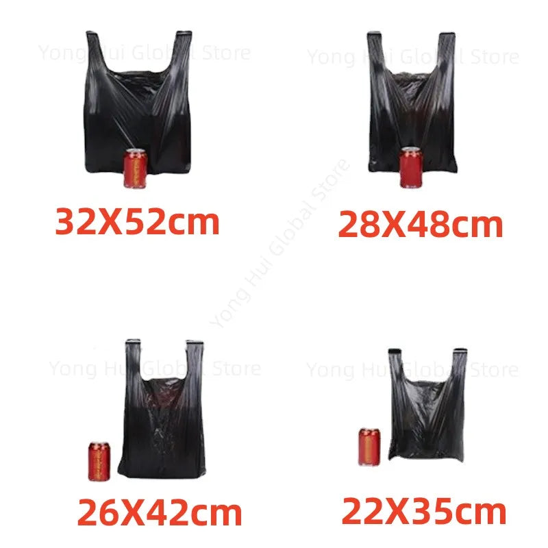 100PCS Black Vest Plastic Bag Kitchen Living Room Clean Garbage Storage Bag Takeaway Shopping Packing Garbage with Handle Bag
