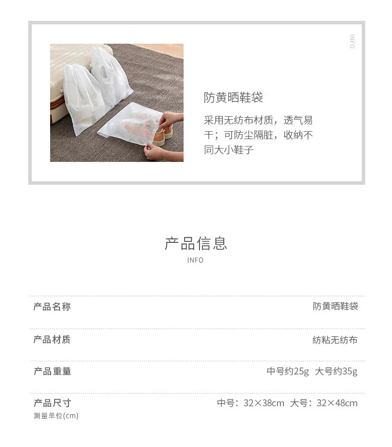 Portable both good for travel and home shoes organization. Shoes drying bag, white shoes anti-yellow pouch bag.