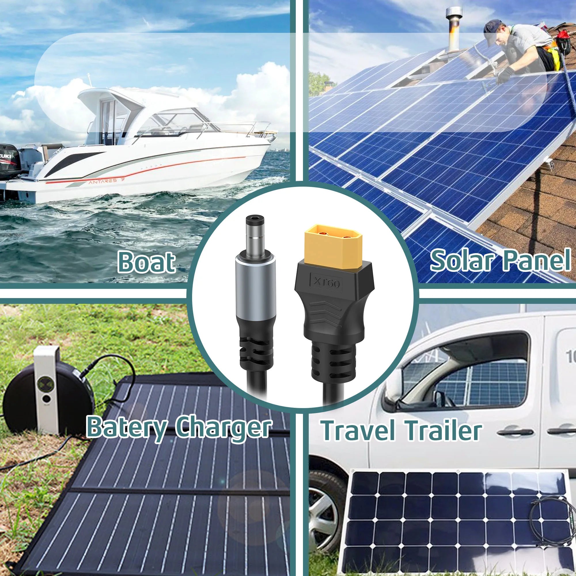 16AWG XT60 Female To DC5521 Male Power Cable Adapter for Solar Power Station and Laptops