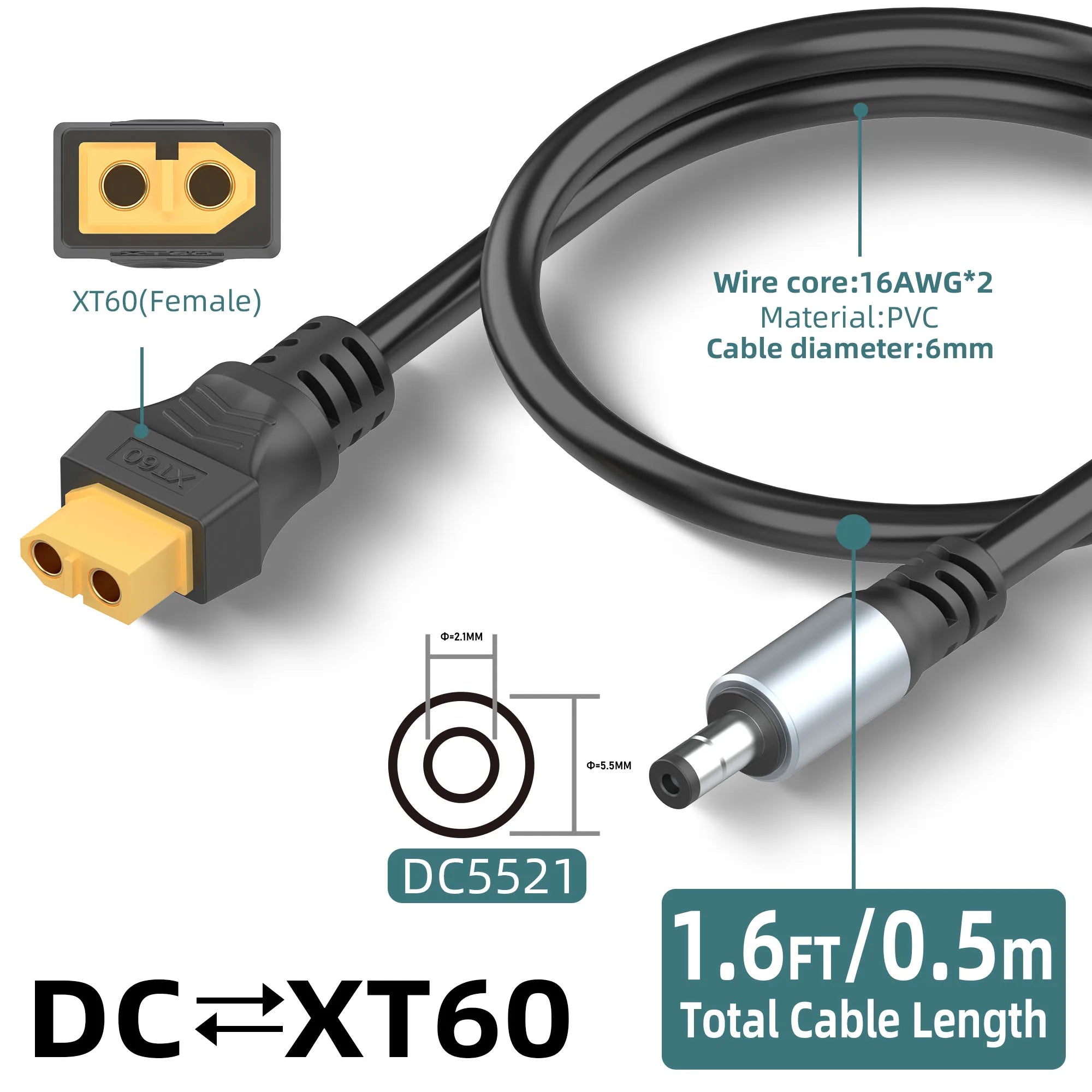 Feature1: XT60 to DC5521 Adpater Power Cable