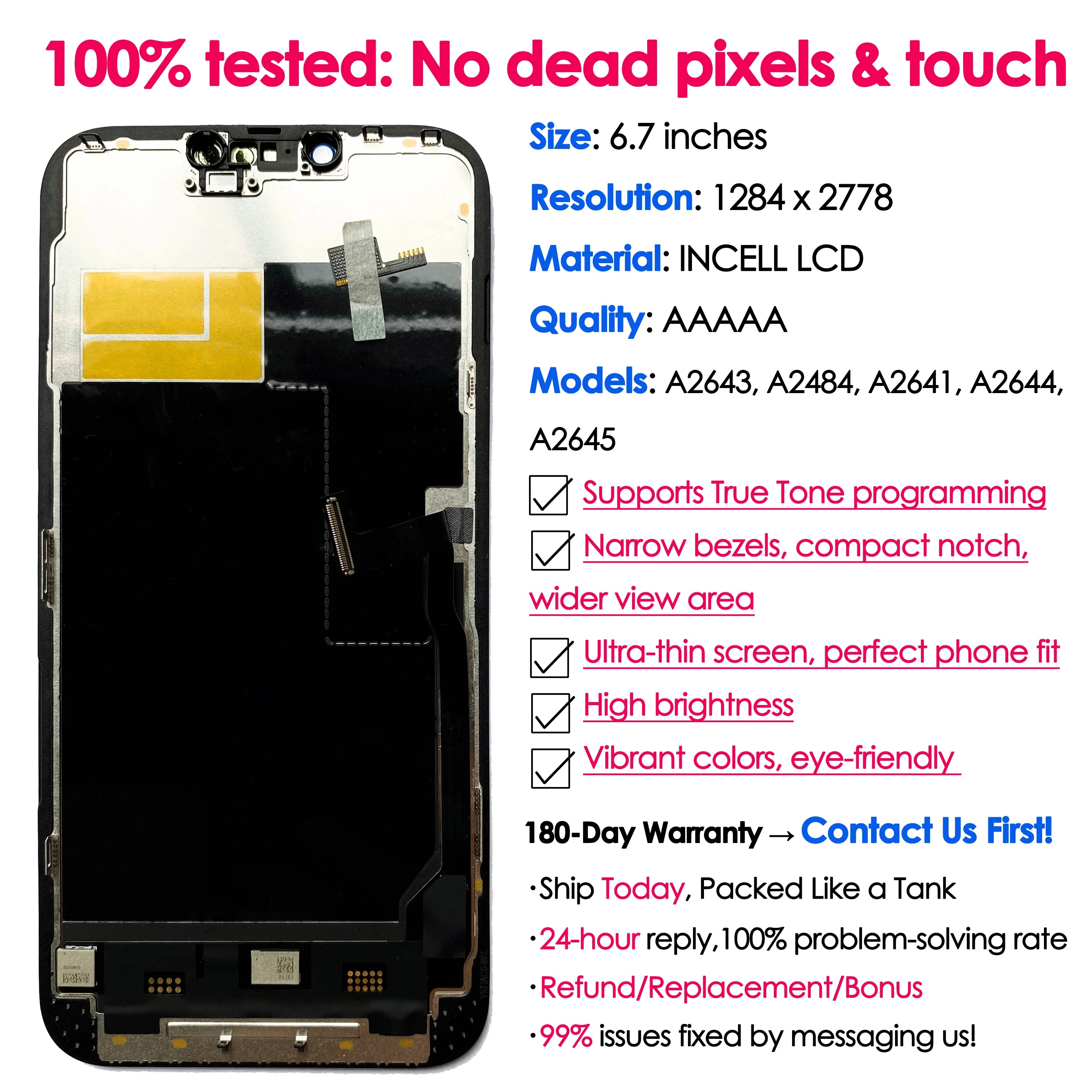 100%tested: No dead pixel $touch issues!