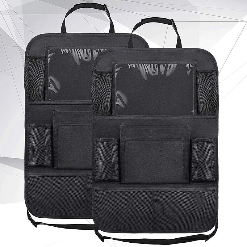 UODATED DURABLE MATERIALS: Made of environmental friendly materials 600D polyester, our car back seat organizer is more durable to perfect protect your car seat upholstery and your seats from scratches, spills, stains, scuff marks, mud, dirt. Avoiding your seat getting worn out.
