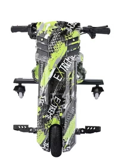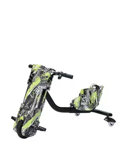 Take this scooter outside and see how the 3 wheel electric drifter scooter makes playtime more fun. Colorful graffiti graphics stand out in any park. The design is appealing to kids who like to show off their style. The scooter’s side wheels provide excellent stability. Both beginners and experienced riders feel safe as they drift, spin, and cruise around the block.