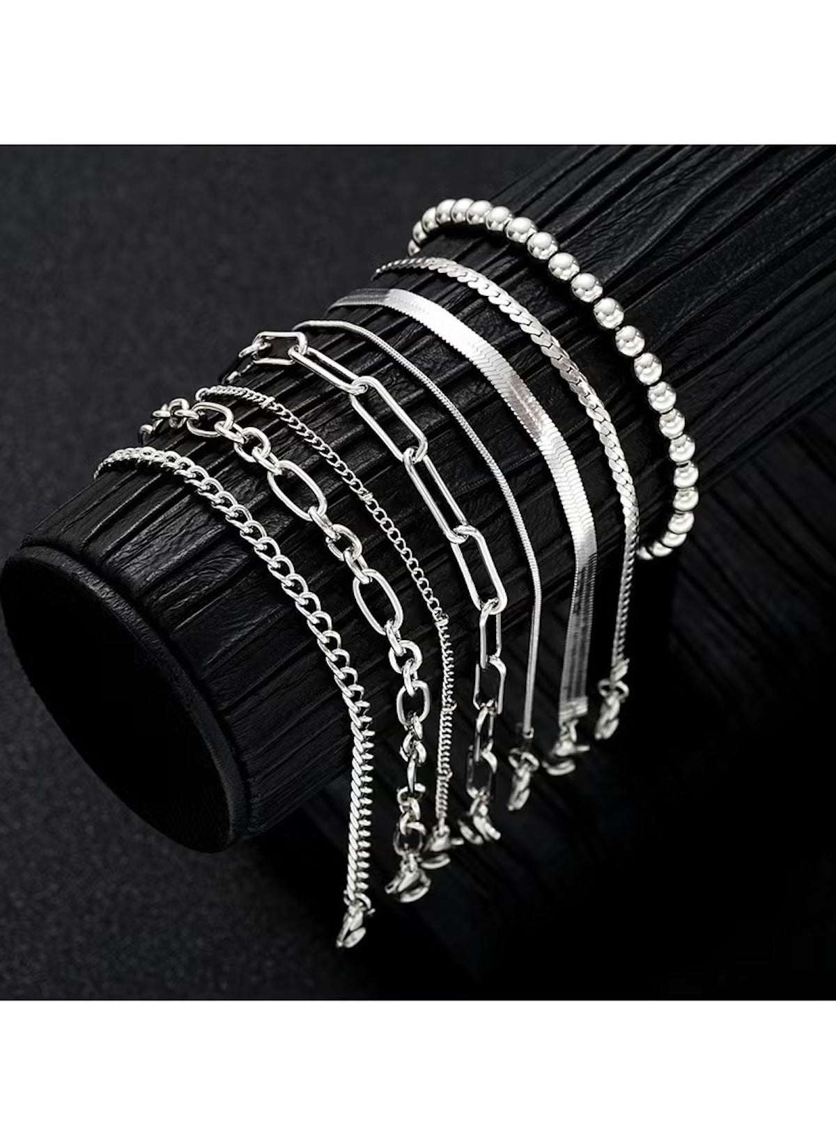 Mix and match the pieces to create your own look. Wear one for a subtle touch, or layer several for a bold statement. The bracelets feature different links and delicate charms. This variety gives you options for casual days or special evenings. The 8 piece silver bracelet collection is lightweight. It fits wrists of various sizes with ease.