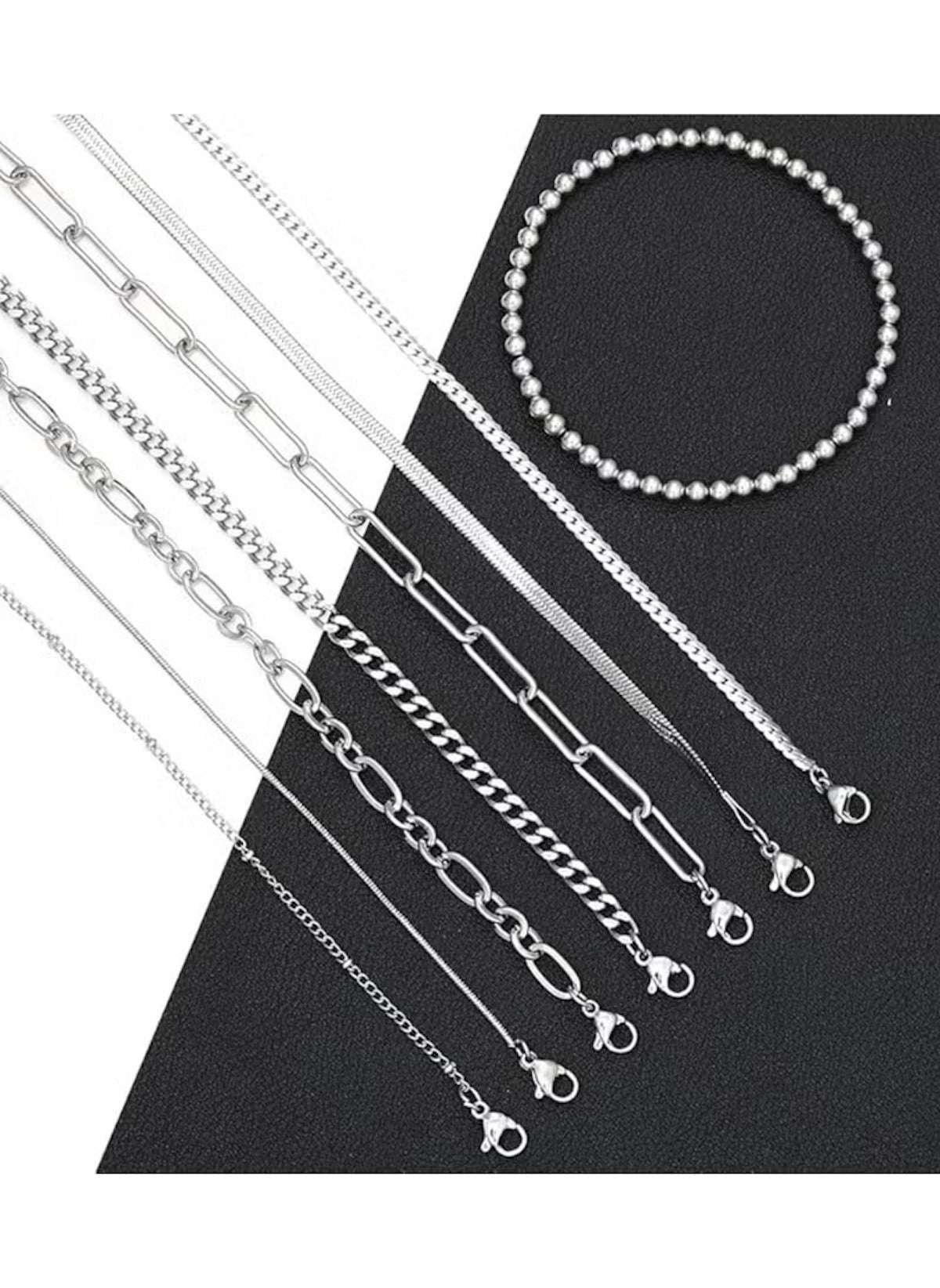 Elevate your style with the 8 piece silver bracelet collection from Mumzar. This collection features eight uniquely designed bracelets. Each bracelet is crafted to add shine and elegance to any outfit. The 8 piece silver bracelet collection blends modern chic with classic charm. Adjustable chains make each bracelet comfortable to wear all day.