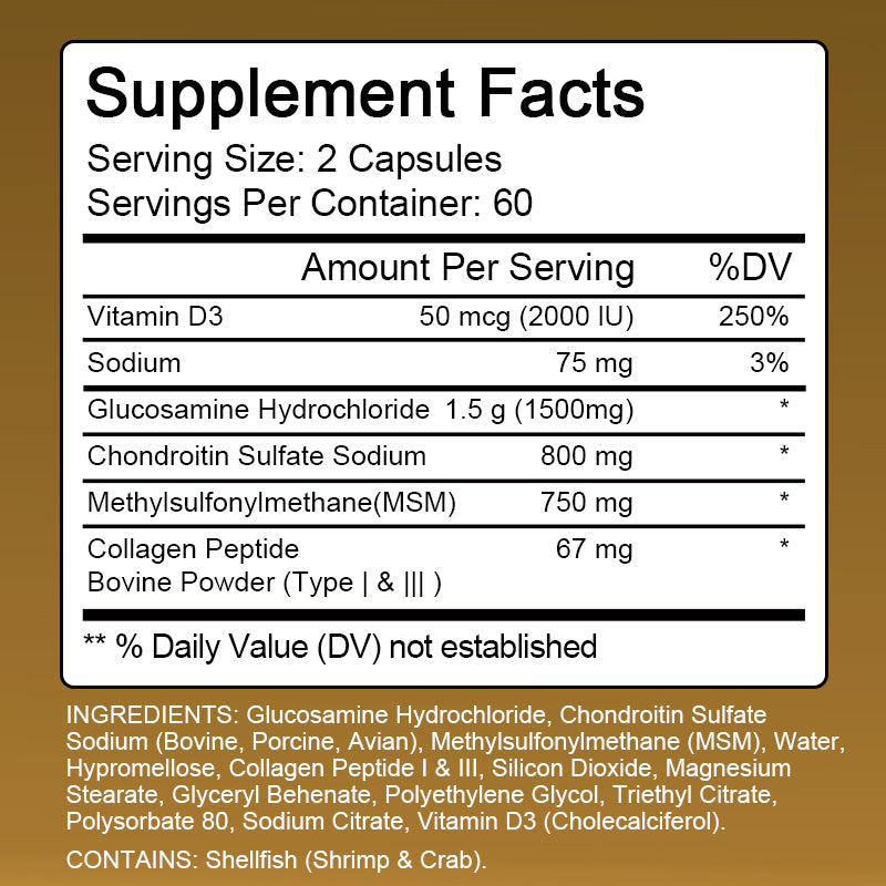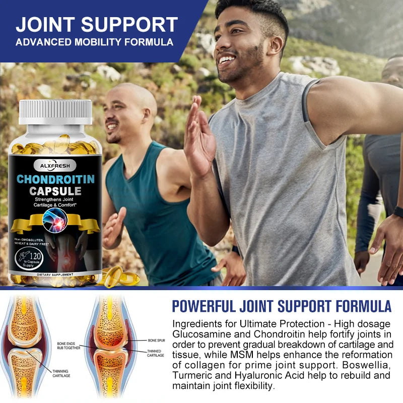 ✔️Bone and Joint Vitamins: Bone and joint health supplements for women and men are key to your comfort. Glucosamine with Chondroitin is a dietary supplement that helps keep your joints moving smoothly by helping support joint cushioning.