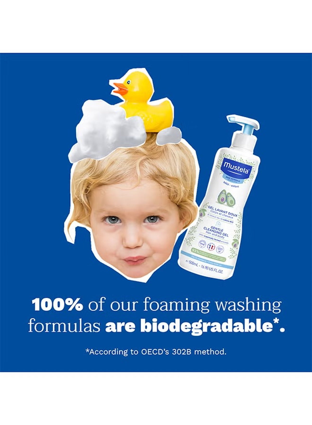 With 90% ingredients of natural origin, it respects your baby’s skin balance while leaving a subtle, delightful scent. Its tear-free, vegan, and biodegradable formula is dermatologically tested for the utmost safety — making it perfect for daily use from birth.